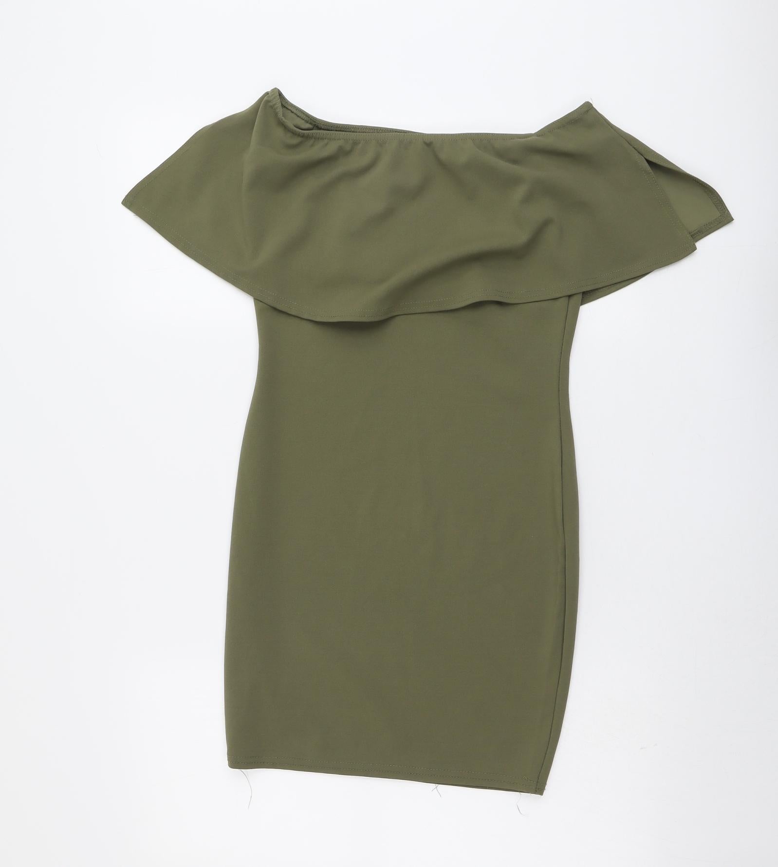 PRETTYLITTLETHING Womens Green Polyester Bodycon Size 10 Off the Shoulder Pullover