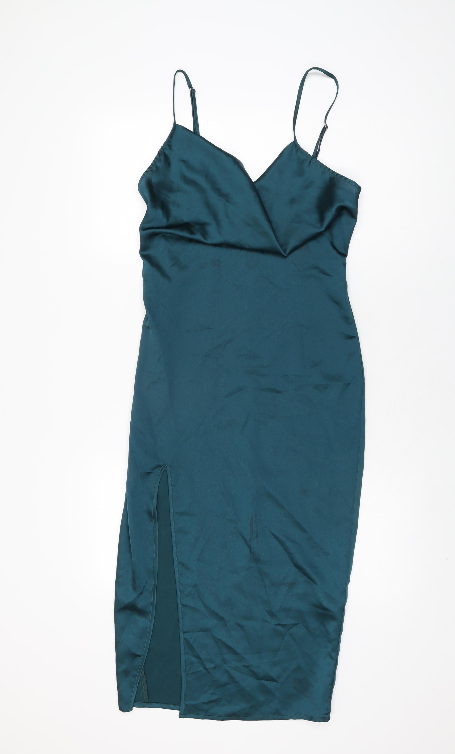 PRETTYLITTLETHING Womens Green Polyester Bodycon Size 8 Cowl Neck Zip
