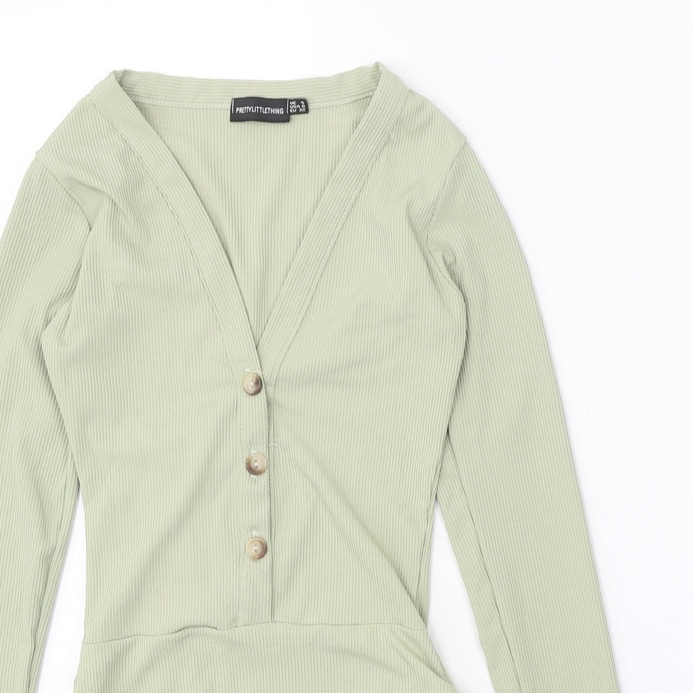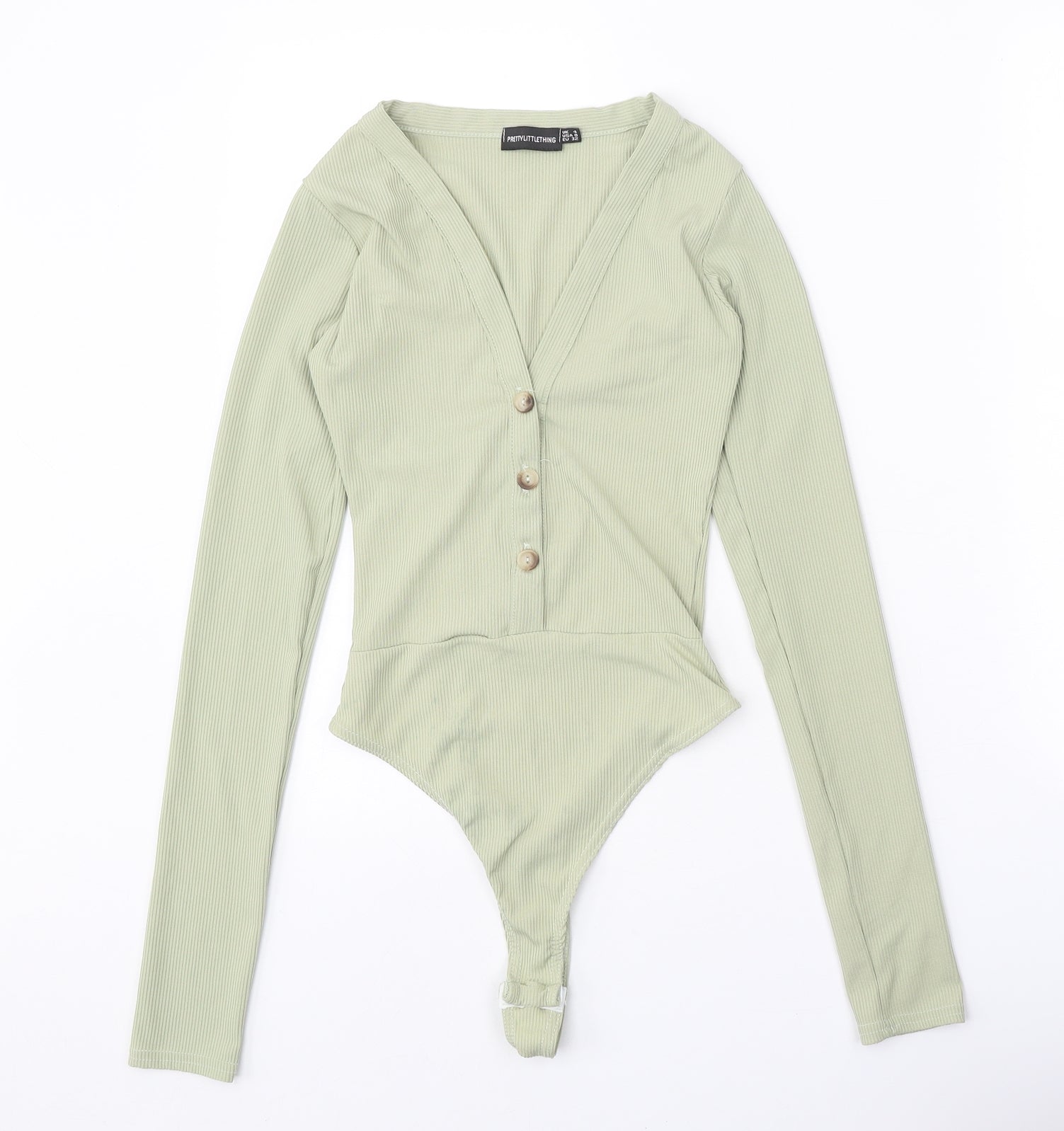 PRETTYLITTLETHING Womens Green Polyester Bodysuit One-Piece Size 4 Snap