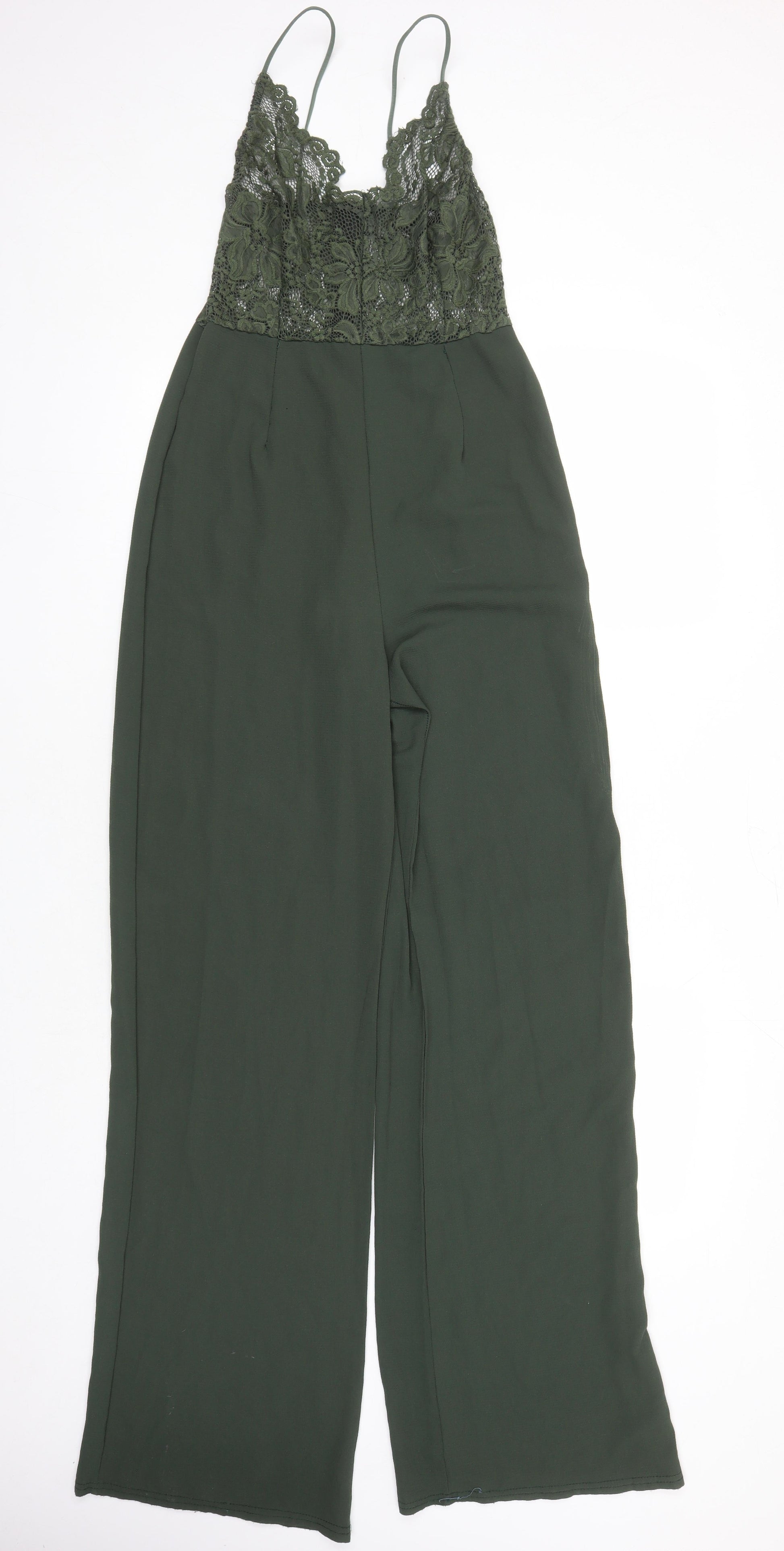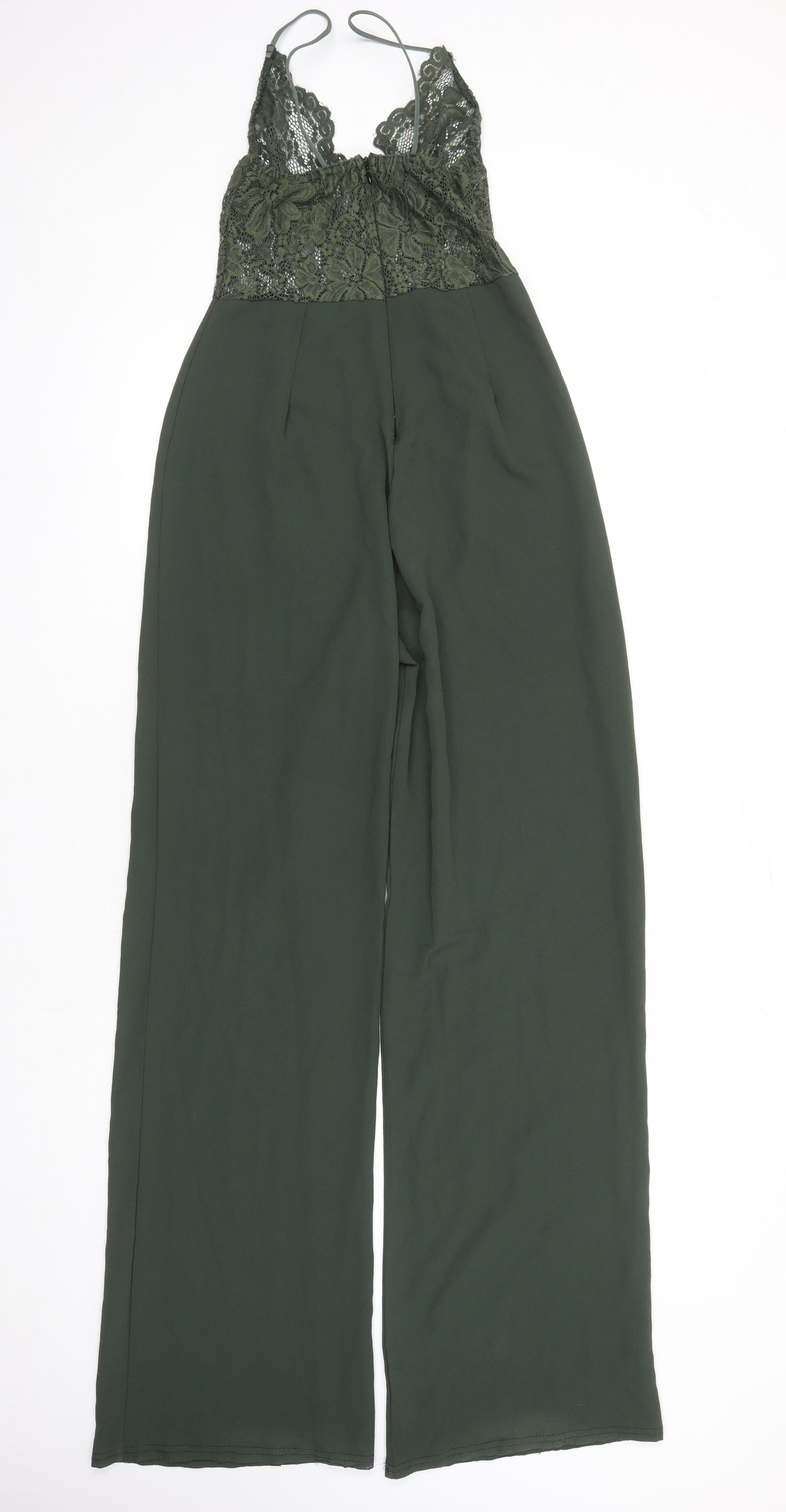 PRETTYLITTLETHING Womens Green Polyester Jumpsuit One-Piece Size 10 L31 in Zip - Lace Detail