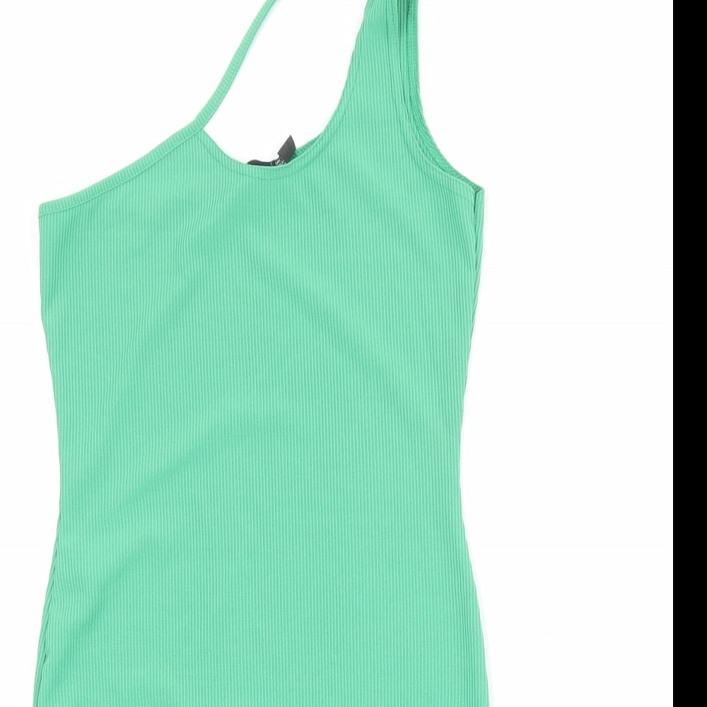 PRETTYLITTLETHING Womens Green Polyester Mini Size 10 One Shoulder Pullover