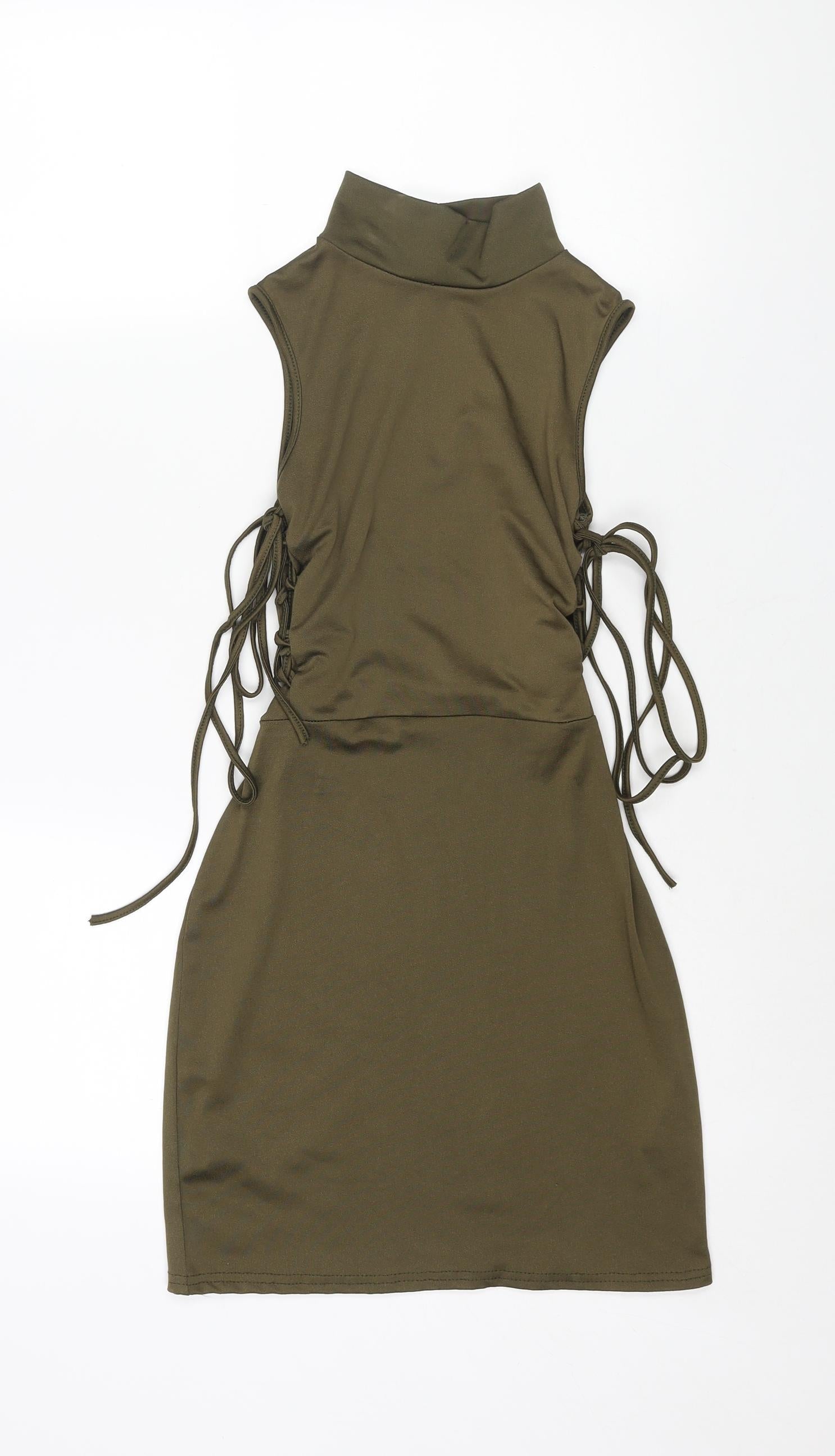 PRETTYLITTLETHING Womens Green Polyester Mini Size 8 Mock Neck Pullover - Lace Up Sides