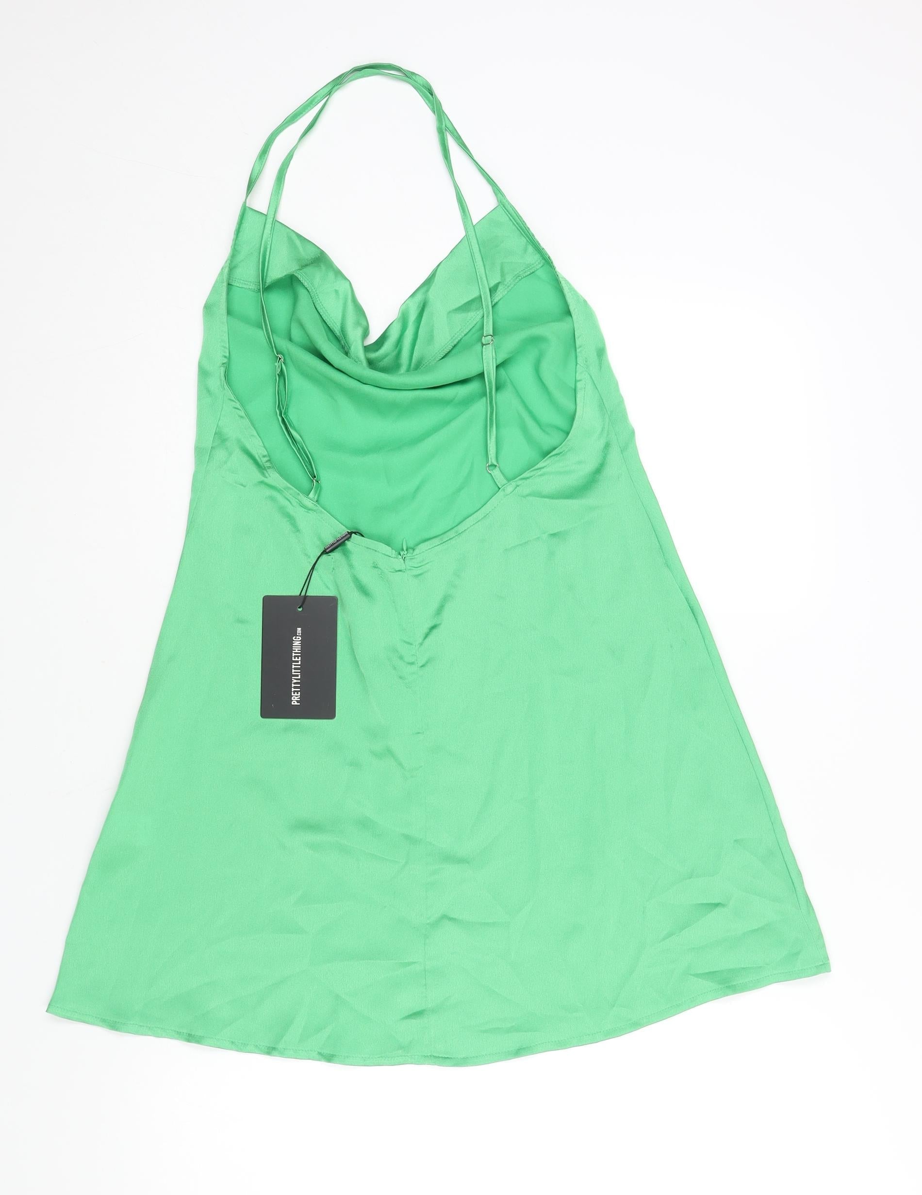 PRETTYLITTLETHING Womens Green Polyester Slip Dress Size 12 Cowl Neck Pullover