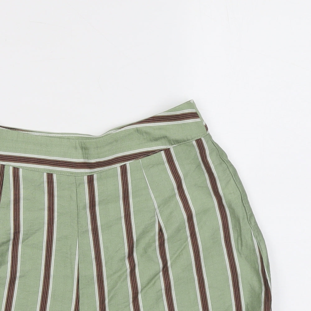 PRETTYLITTLETHING Womens Green Striped Viscose Culotte Shorts Size 8 L3 in Regular Zip