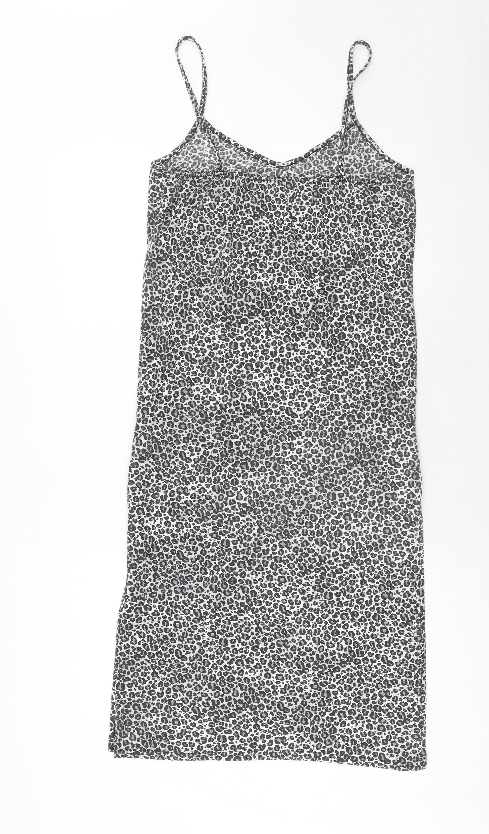 PRETTYLITTLETHING Womens Grey Animal Print Polyester Slip Dress Size 10 V-Neck Pullover - Leopard Pattern