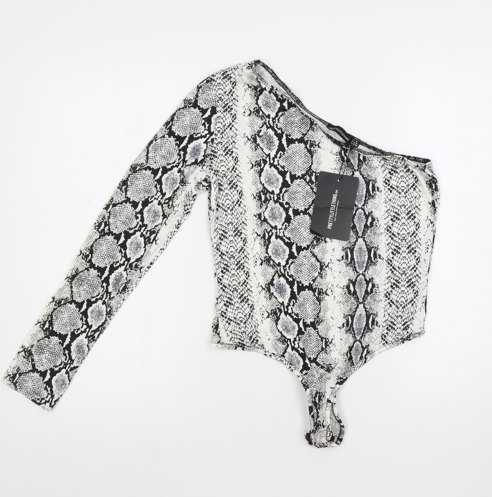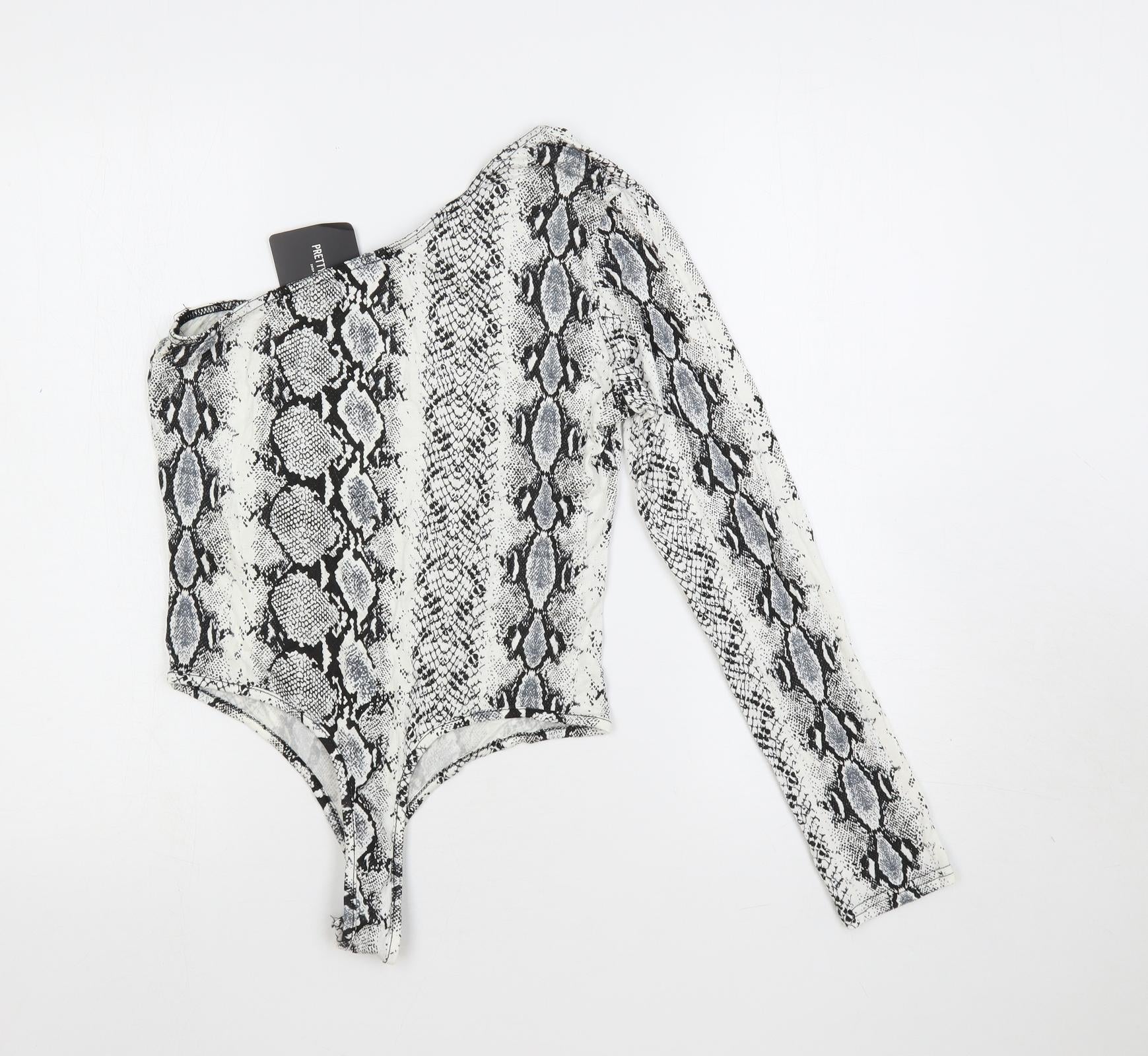PRETTYLITTLETHING Womens Grey Animal Print Viscose Bodysuit One-Piece Size 12 Snap - Snake Print