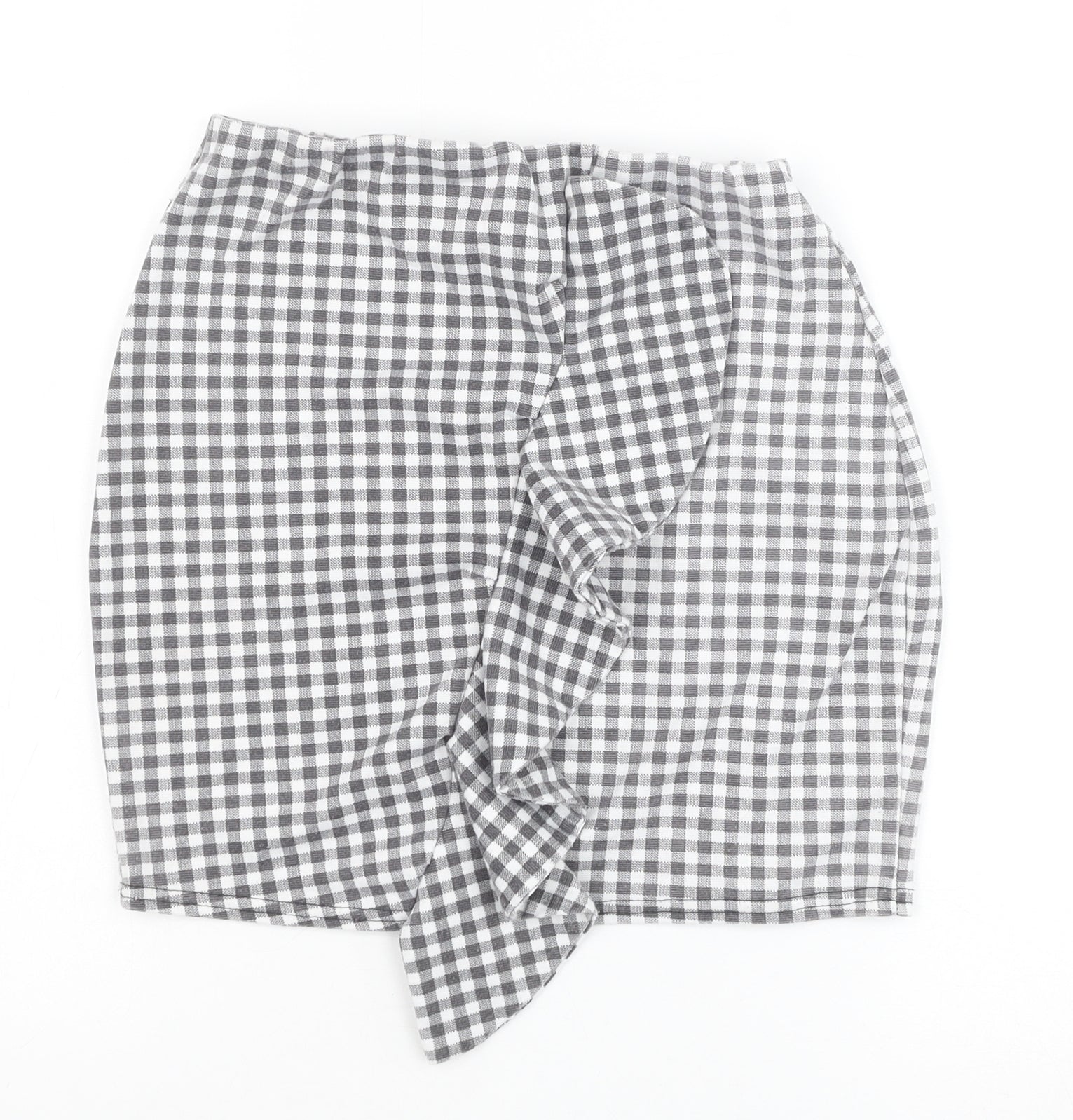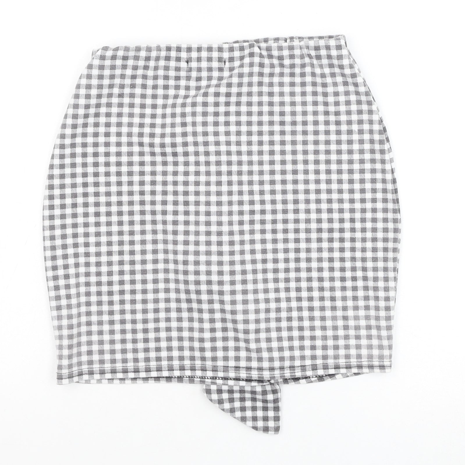 PRETTYLITTLETHING Womens Grey Check Polyester Mini Skirt Size 8