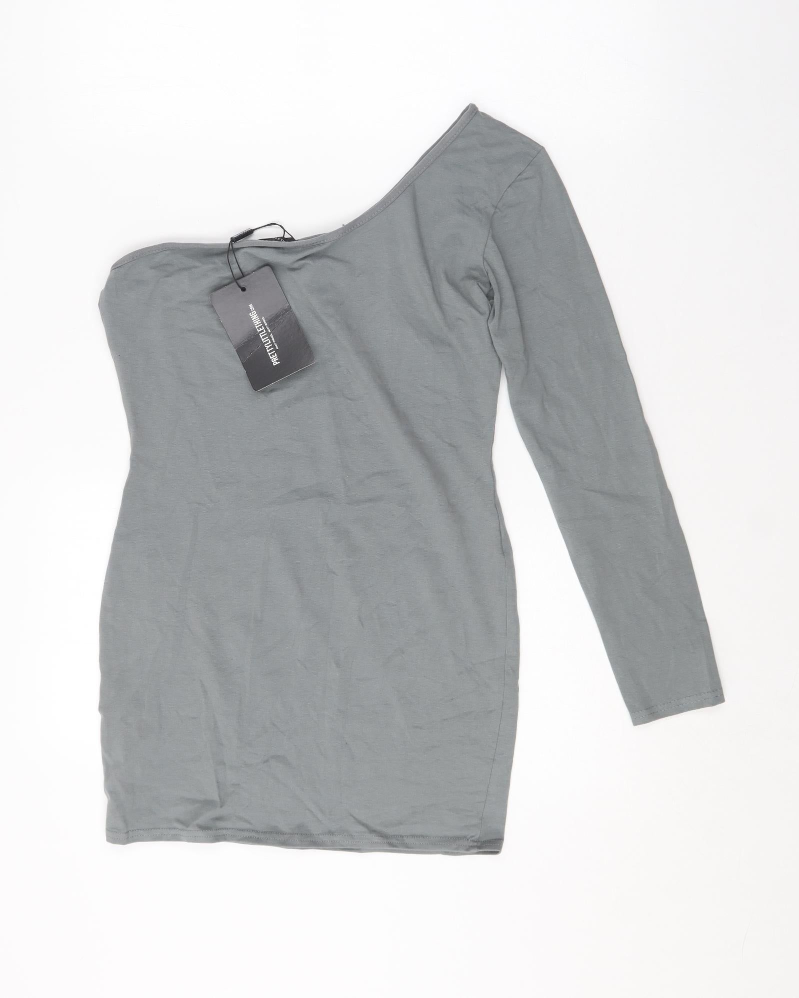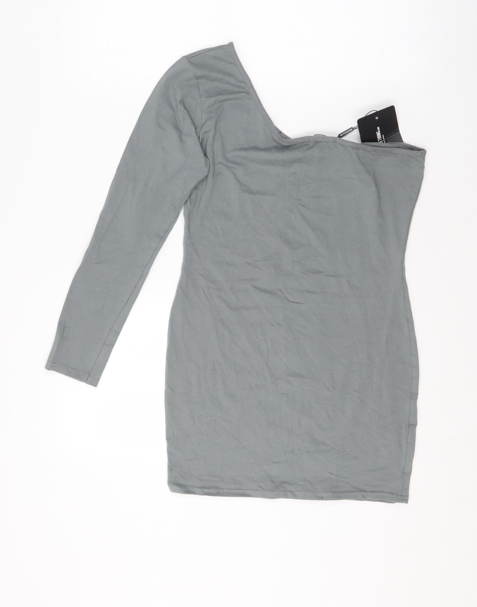 PRETTYLITTLETHING Womens Grey Cotton Bodycon Size 14 One Shoulder