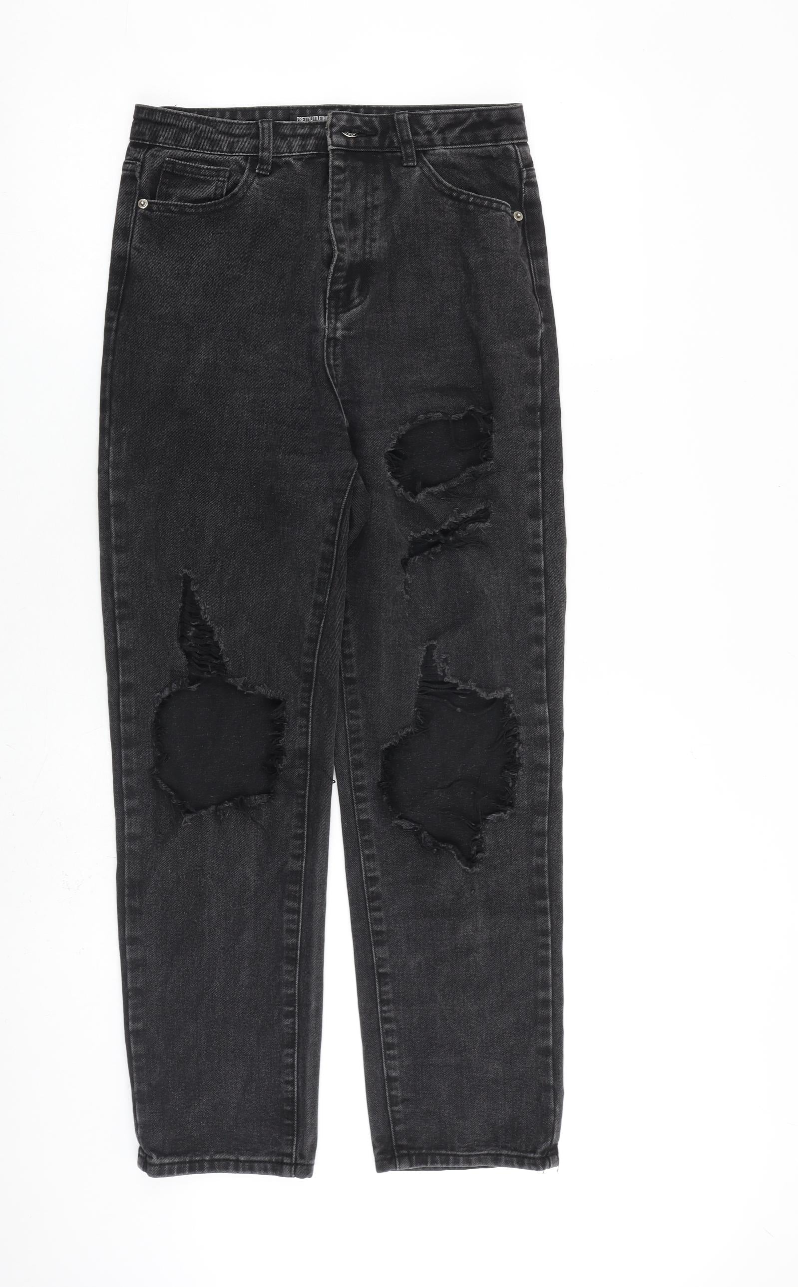 PRETTYLITTLETHING Womens Grey Cotton Straight Jeans Size 8 L28 in Regular Zip