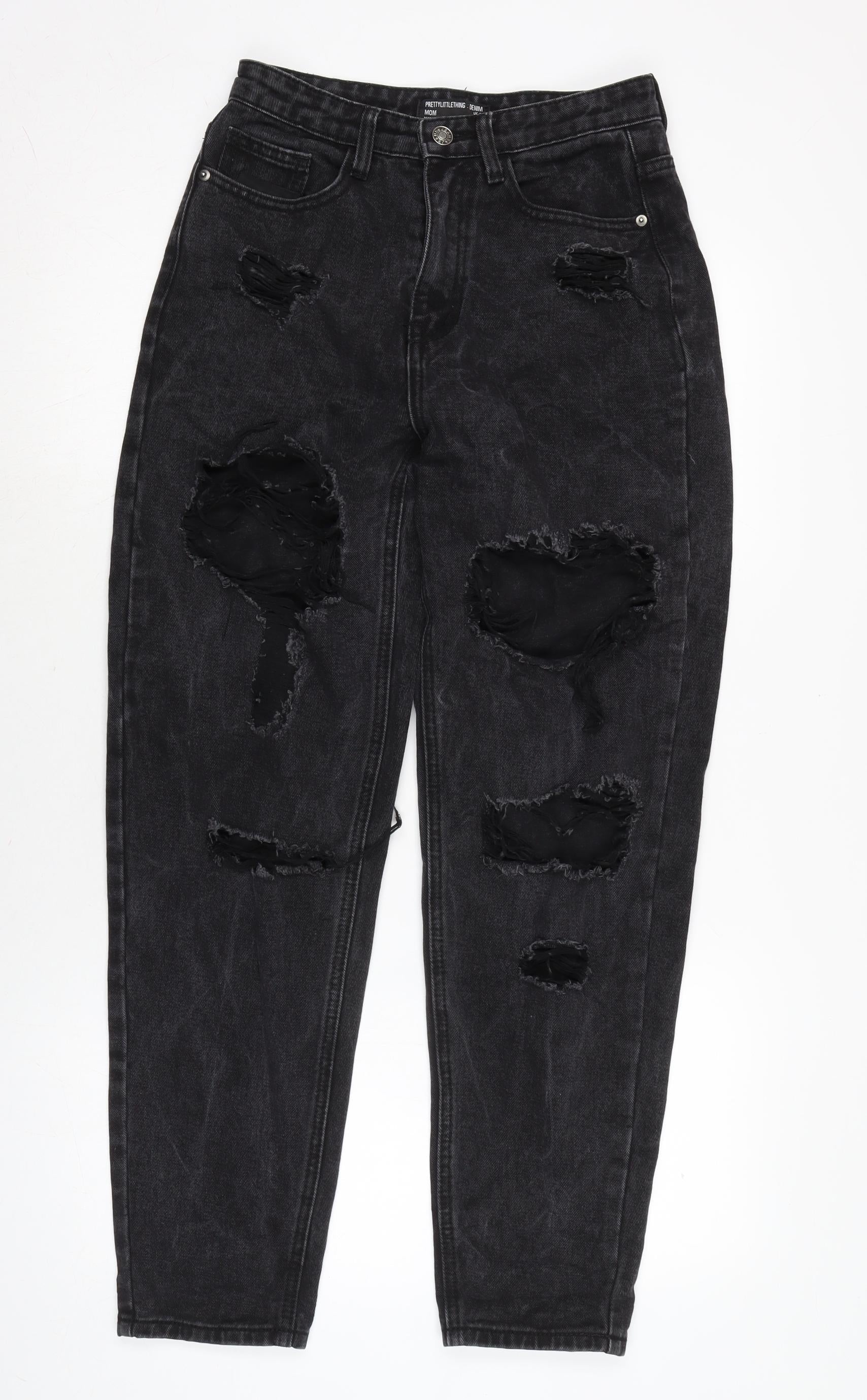 PRETTYLITTLETHING Womens Grey Cotton Straight Jeans Size 8 L28 in Regular Zip