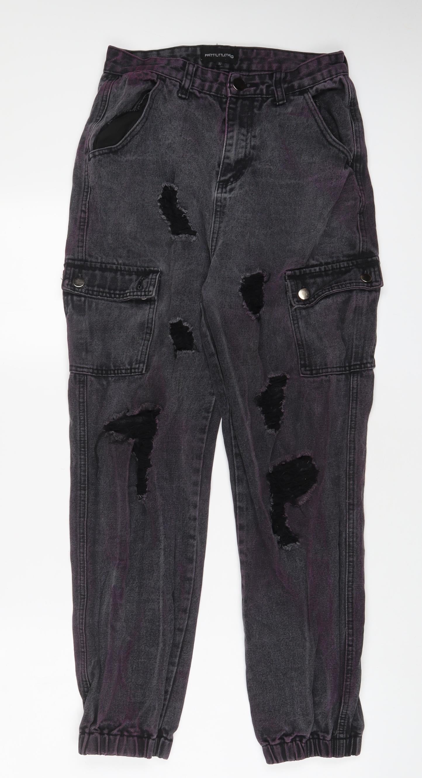 PRETTYLITTLETHING Womens Grey Cotton Tapered Jeans Size 10 L27 in Regular Zip - Purple tint, Cuffed