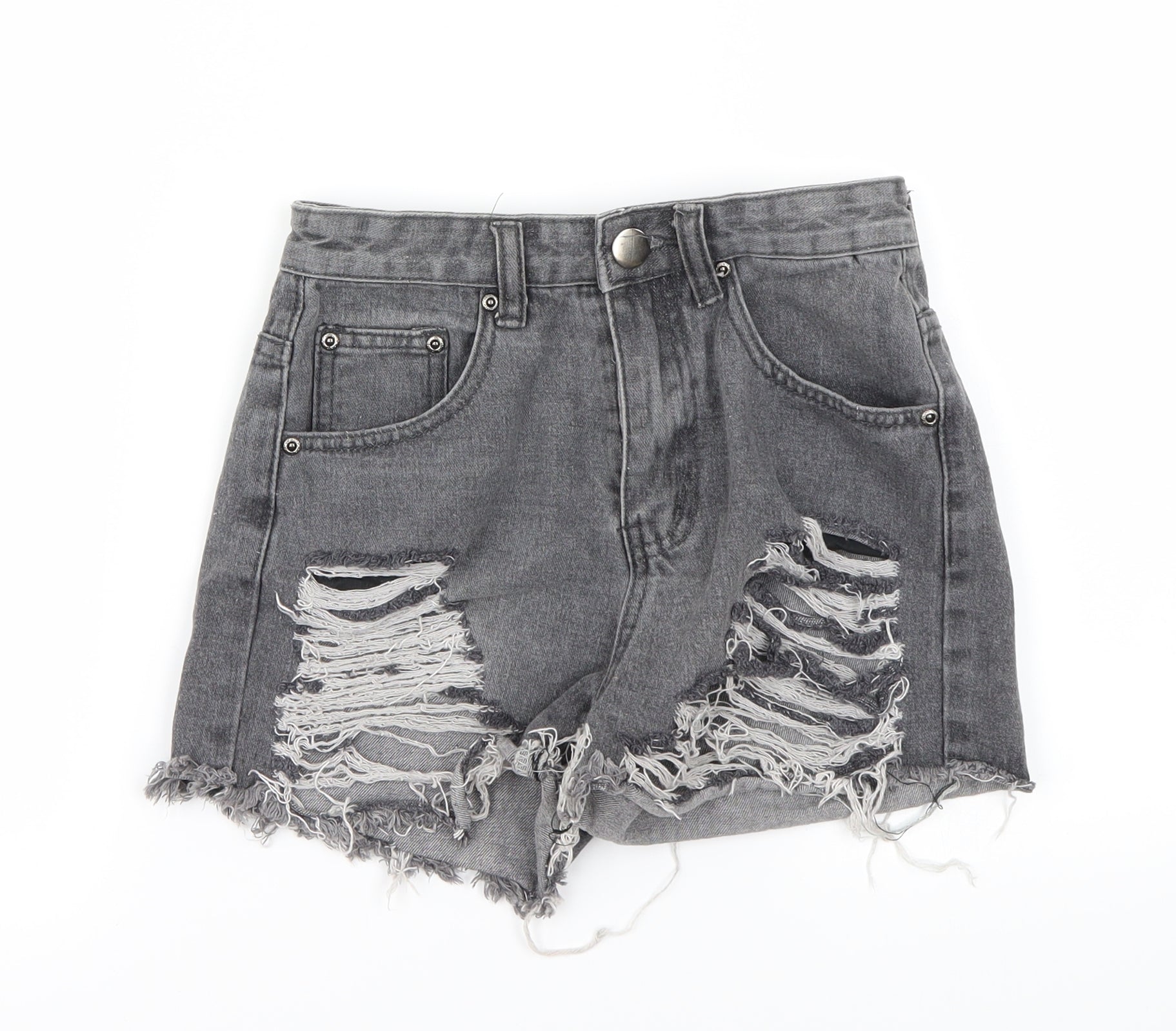 PRETTYLITTLETHING Womens Grey Cut-Off Shorts Size 6