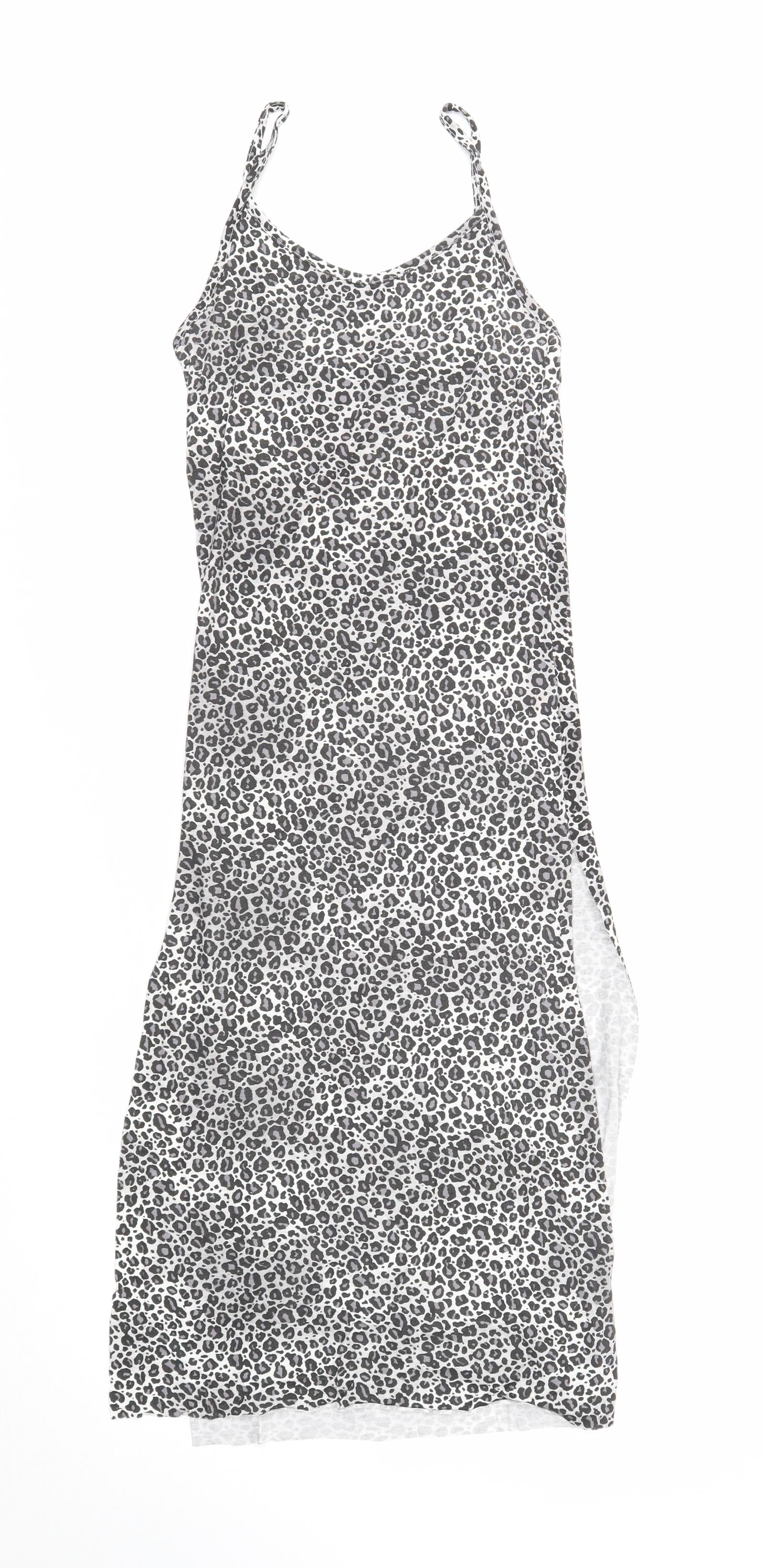 PRETTYLITTLETHING Womens Grey Geometric Viscose Maxi Size 6 V-Neck Pullover - Leopard Print