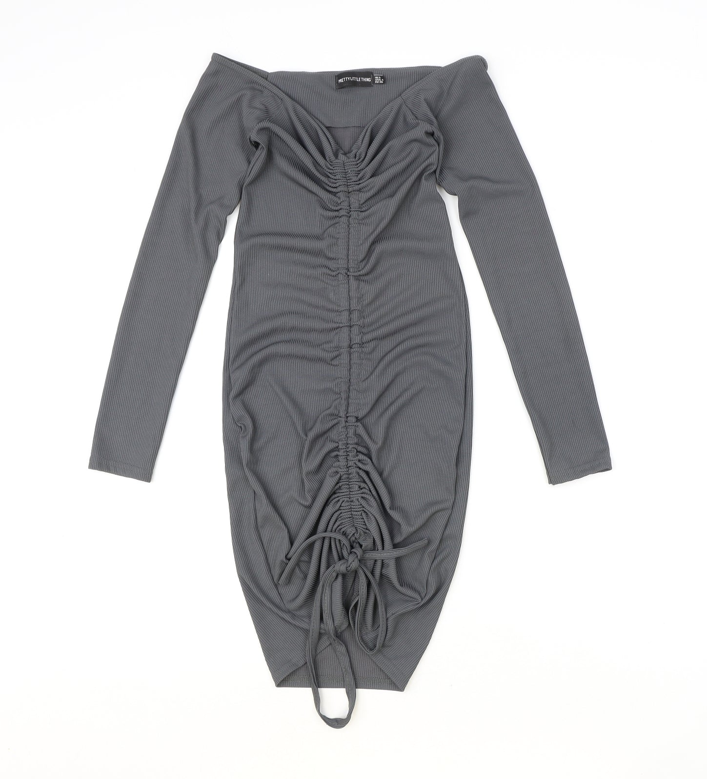 PRETTYLITTLETHING Womens Grey Polyester Bodycon Size 8 V-Neck Pullover - Ruched