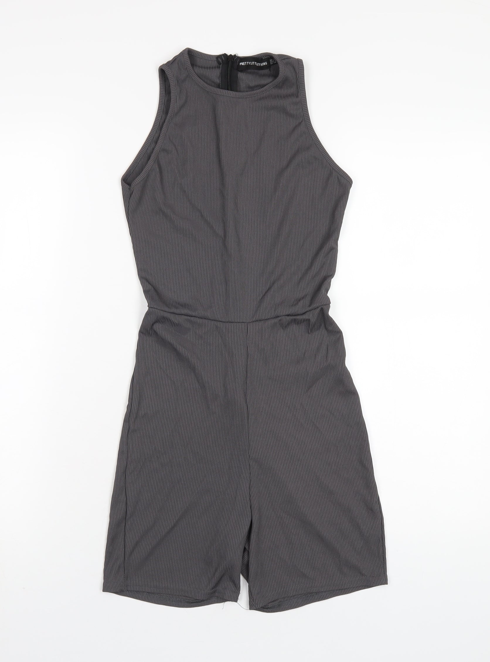 PRETTYLITTLETHING Womens Grey Polyester Unitard One-Piece Size 10 Zip