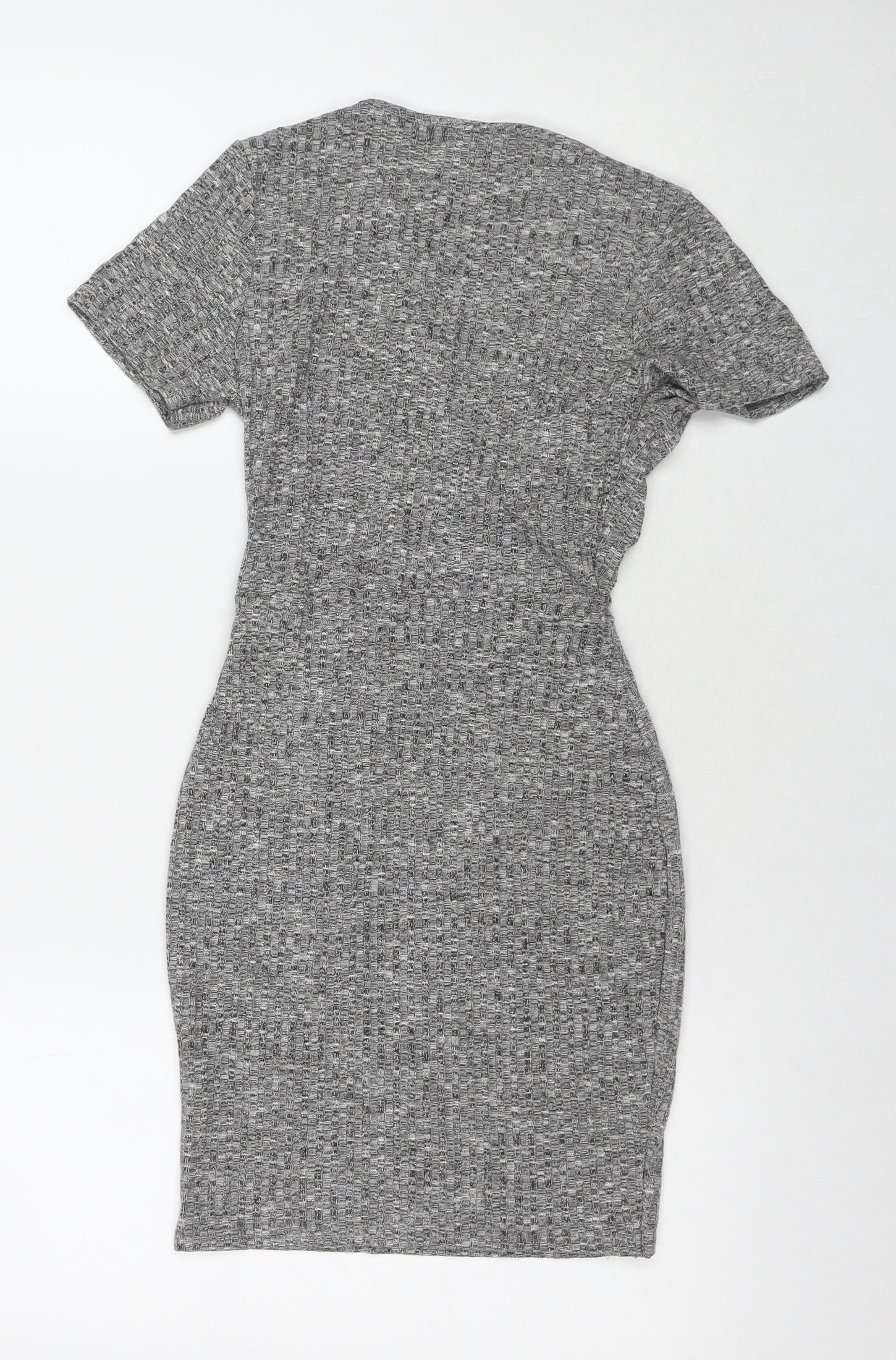 PRETTYLITTLETHING Womens Grey Polyester Wrap Dress Size 6 V-Neck Pullover