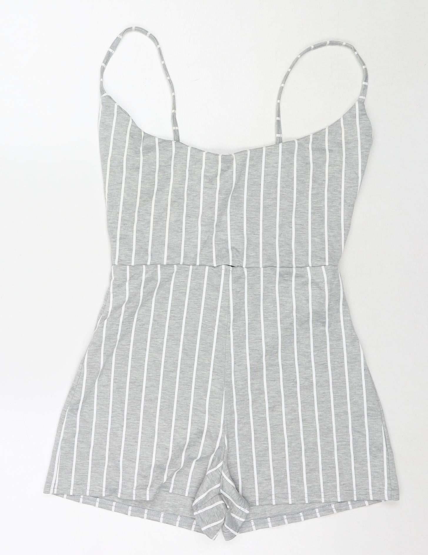 PRETTYLITTLETHING Womens Grey Striped Polyester Playsuit One-Piece Size 10 L3 in Pullover