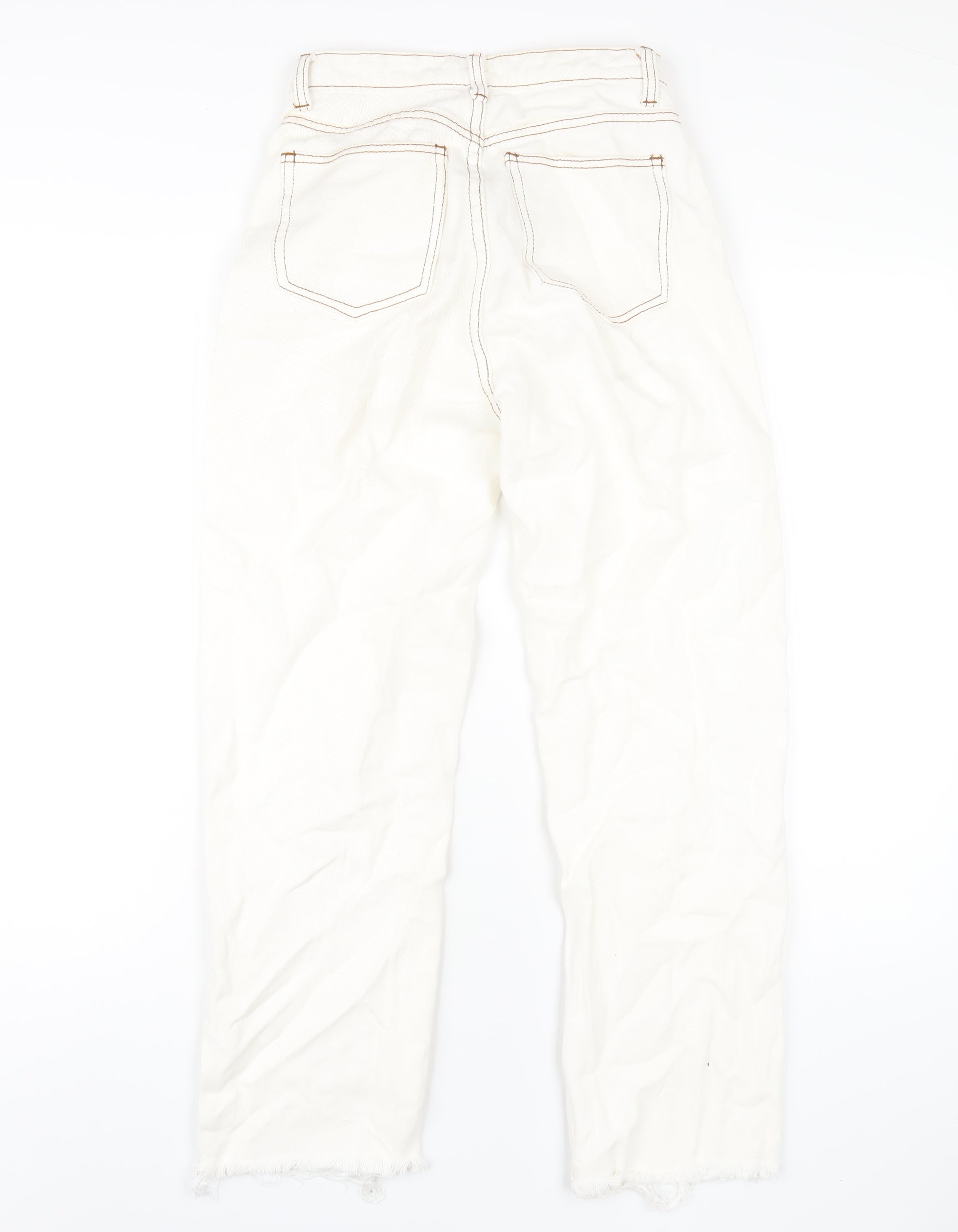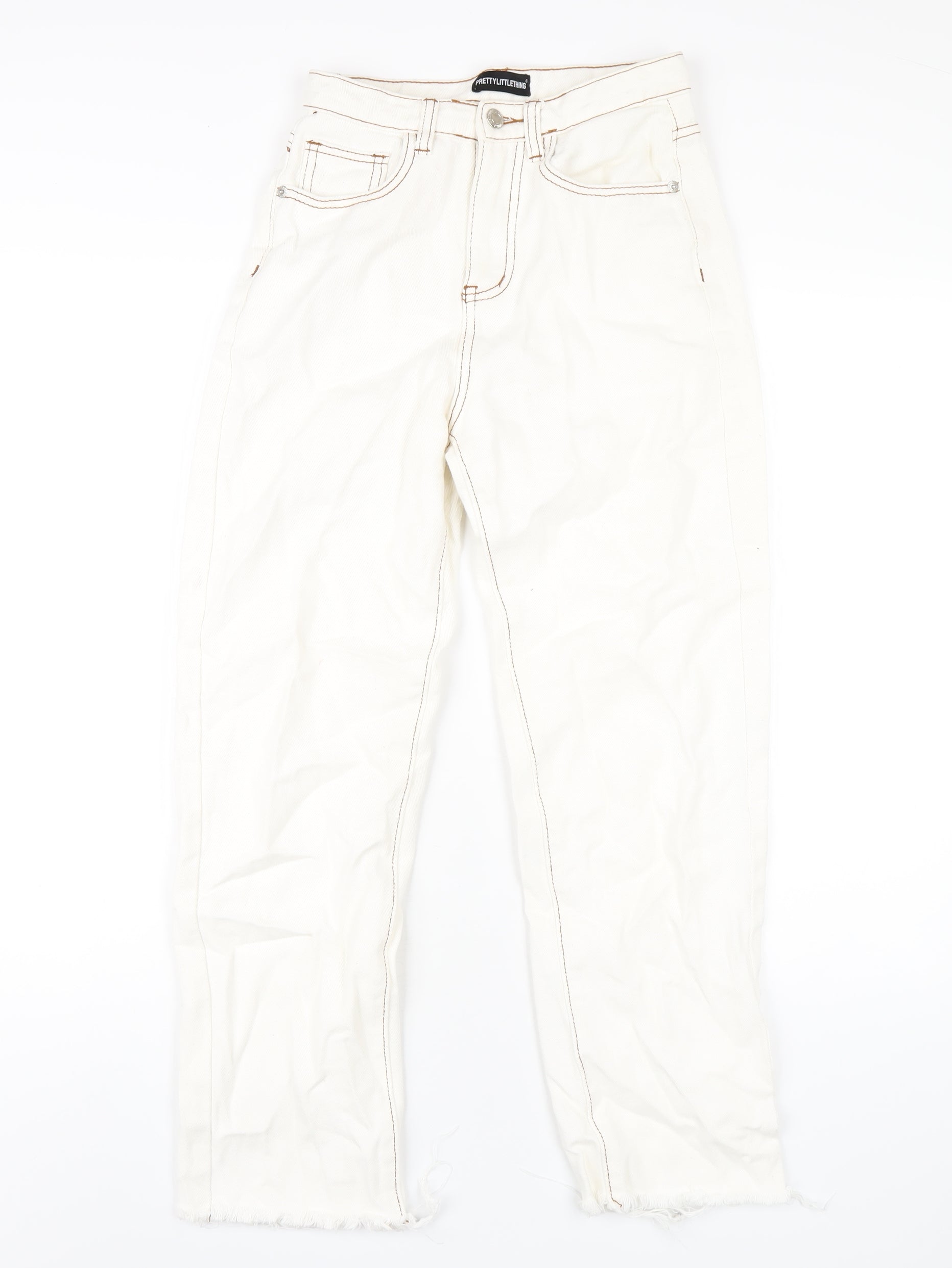 PRETTYLITTLETHING Womens Ivory Cotton Straight Jeans Size 4 L28 in Regular Zip