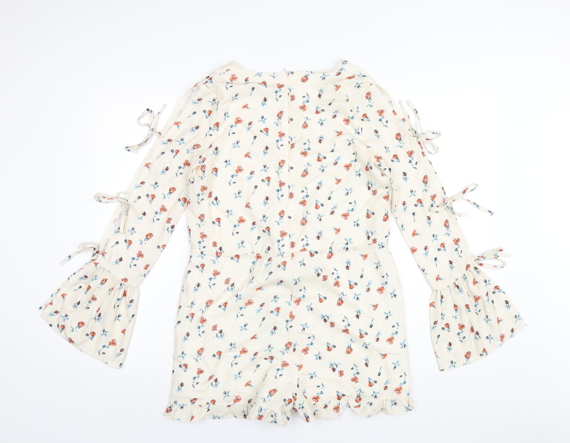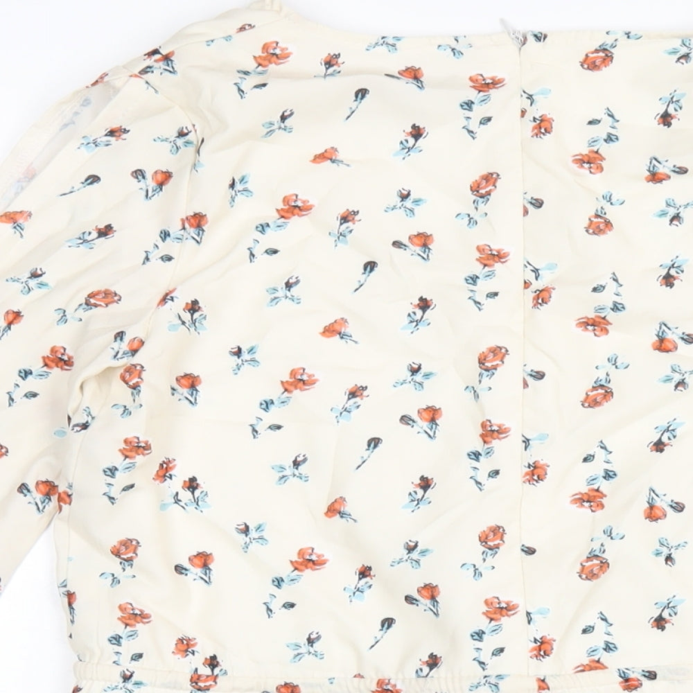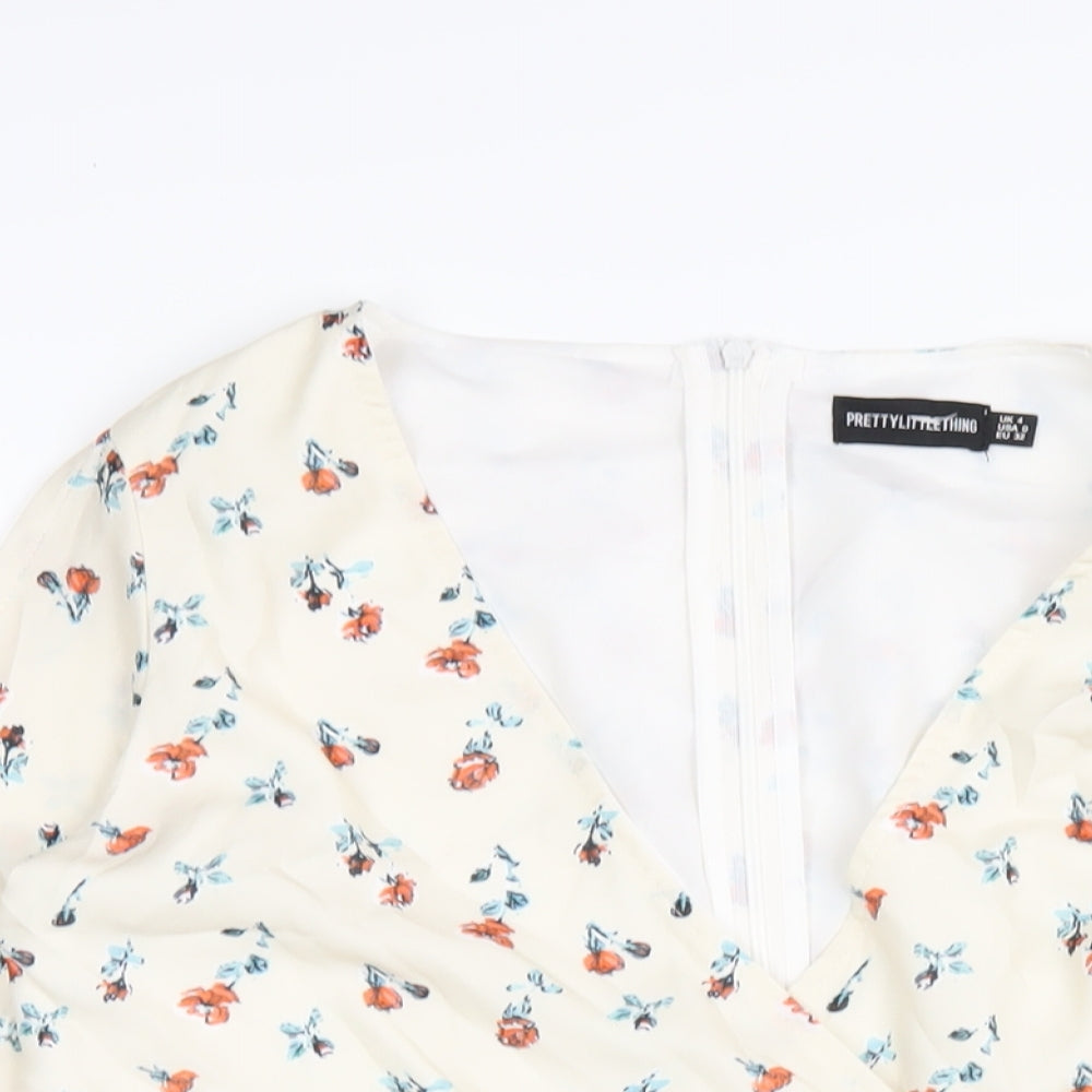 PRETTYLITTLETHING Womens Ivory Floral Polyester Playsuit One-Piece Size 4 Zip