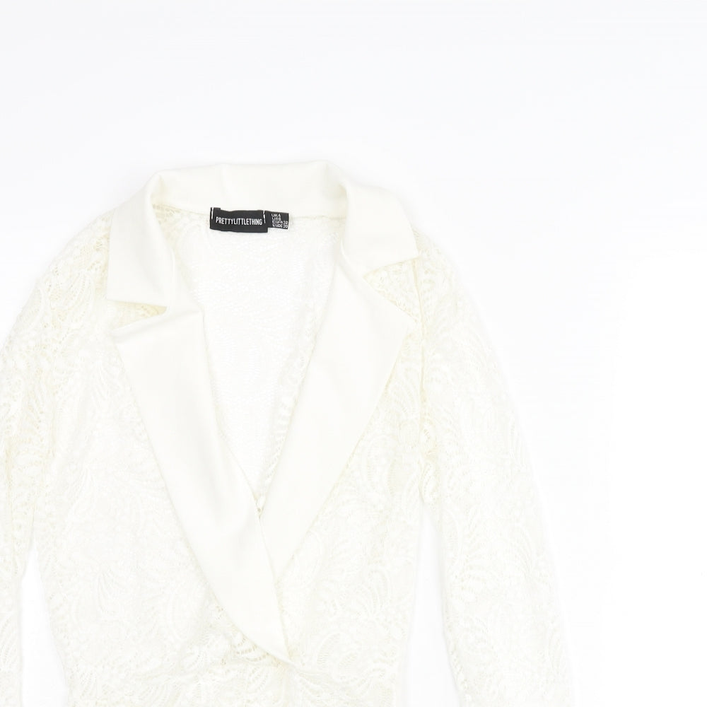 PRETTYLITTLETHING Womens Ivory Nylon Bodysuit One-Piece Size 4 Snap