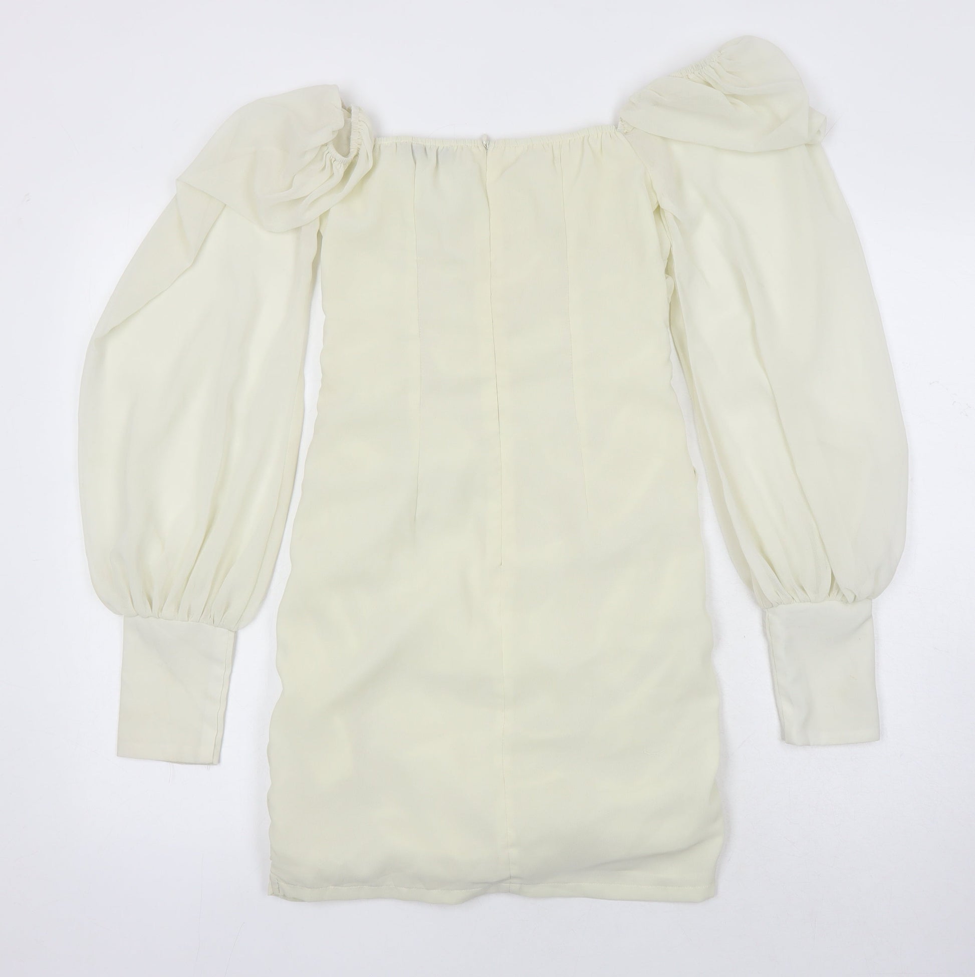 PRETTYLITTLETHING Womens Ivory Polyester Shift Size 4 Square Neck
