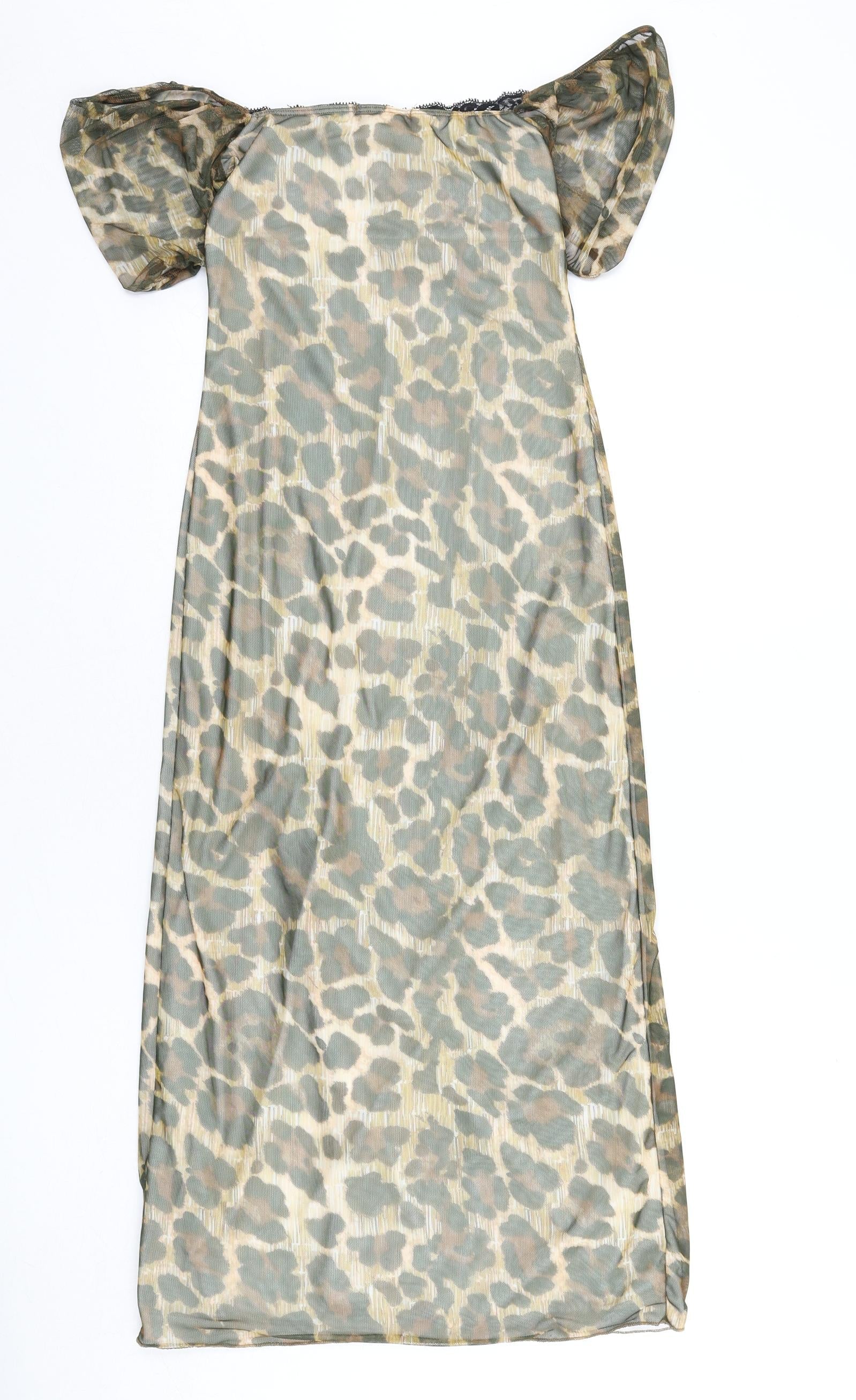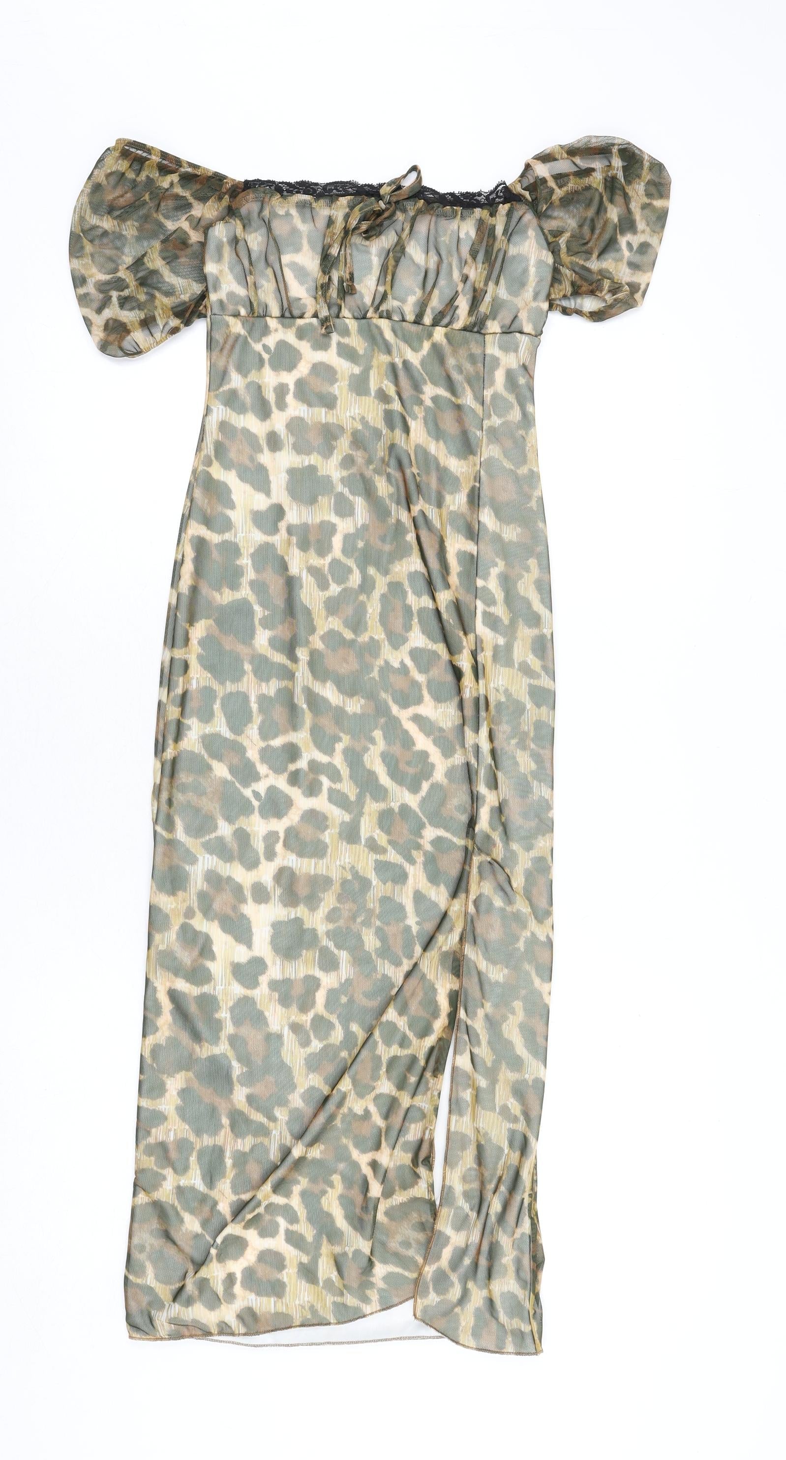 PRETTYLITTLETHING Womens Multicoloured Animal Print Polyester Bodycon Size 8 Off the Shoulder Pullover - Leopard Print, Lace Trim