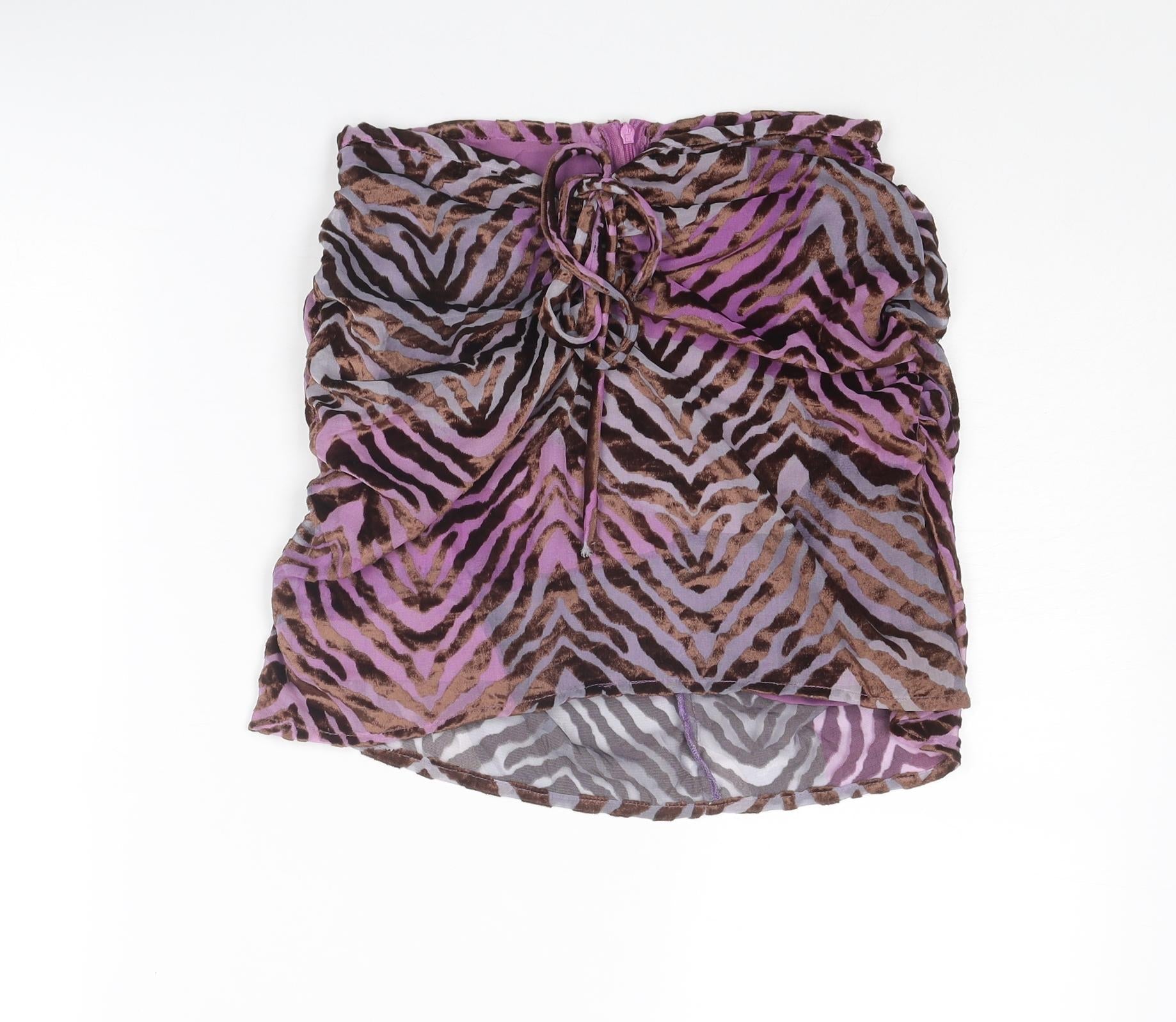 PRETTYLITTLETHING Womens Multicoloured Animal Print Polyester Mini Skirt Size 8 Zip - Ruched Detail