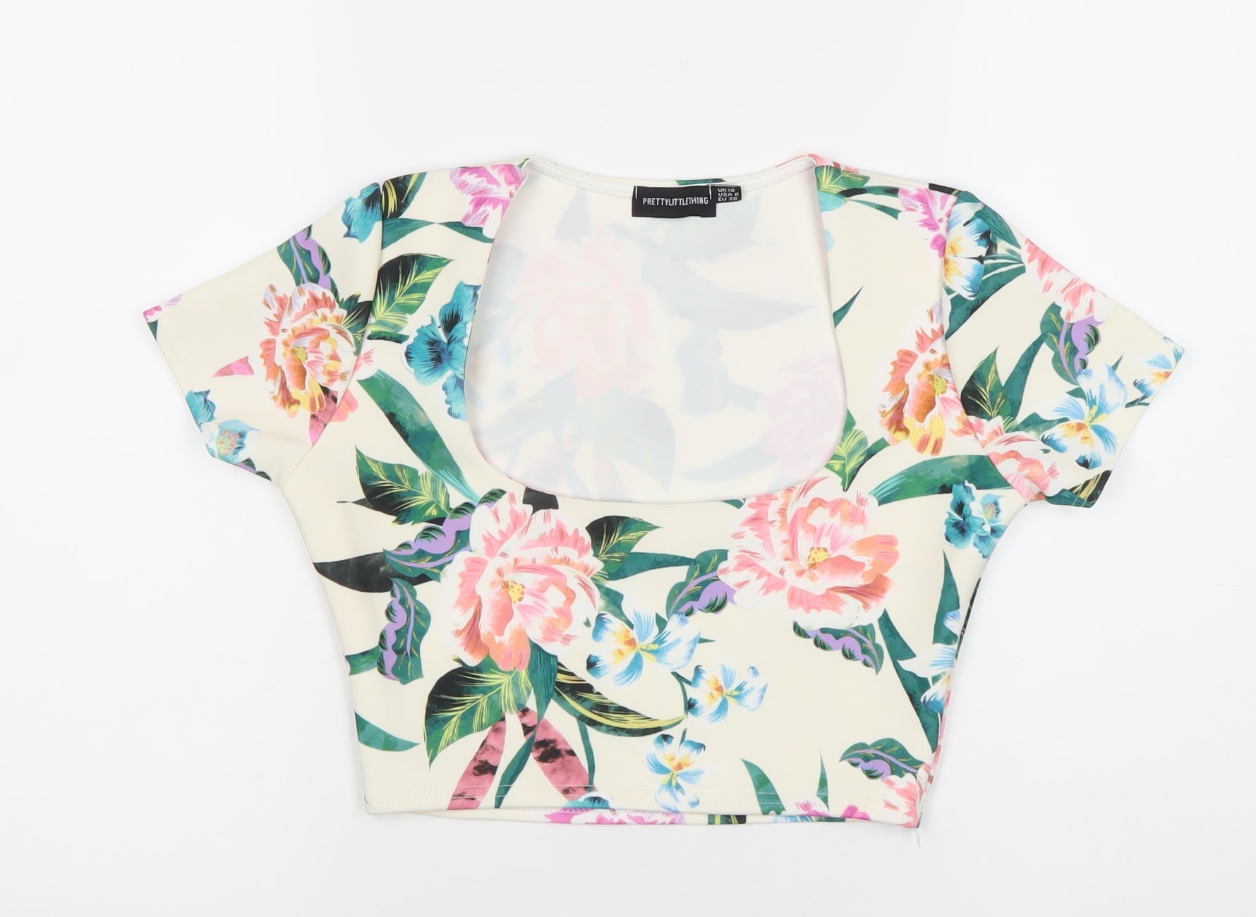 PrettyLittleThing Womens Multicoloured Floral Cropped T-Shirt Size 10