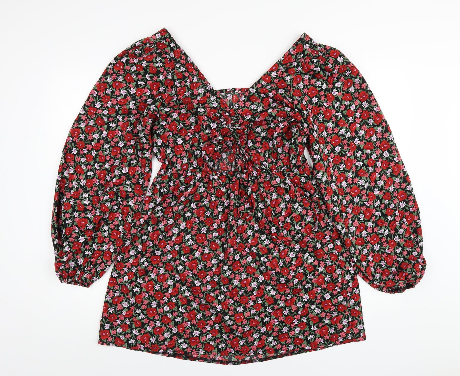PRETTYLITTLETHING Womens Multicoloured Floral Polyester A-Line Size 12 Scoop Neck Pullover