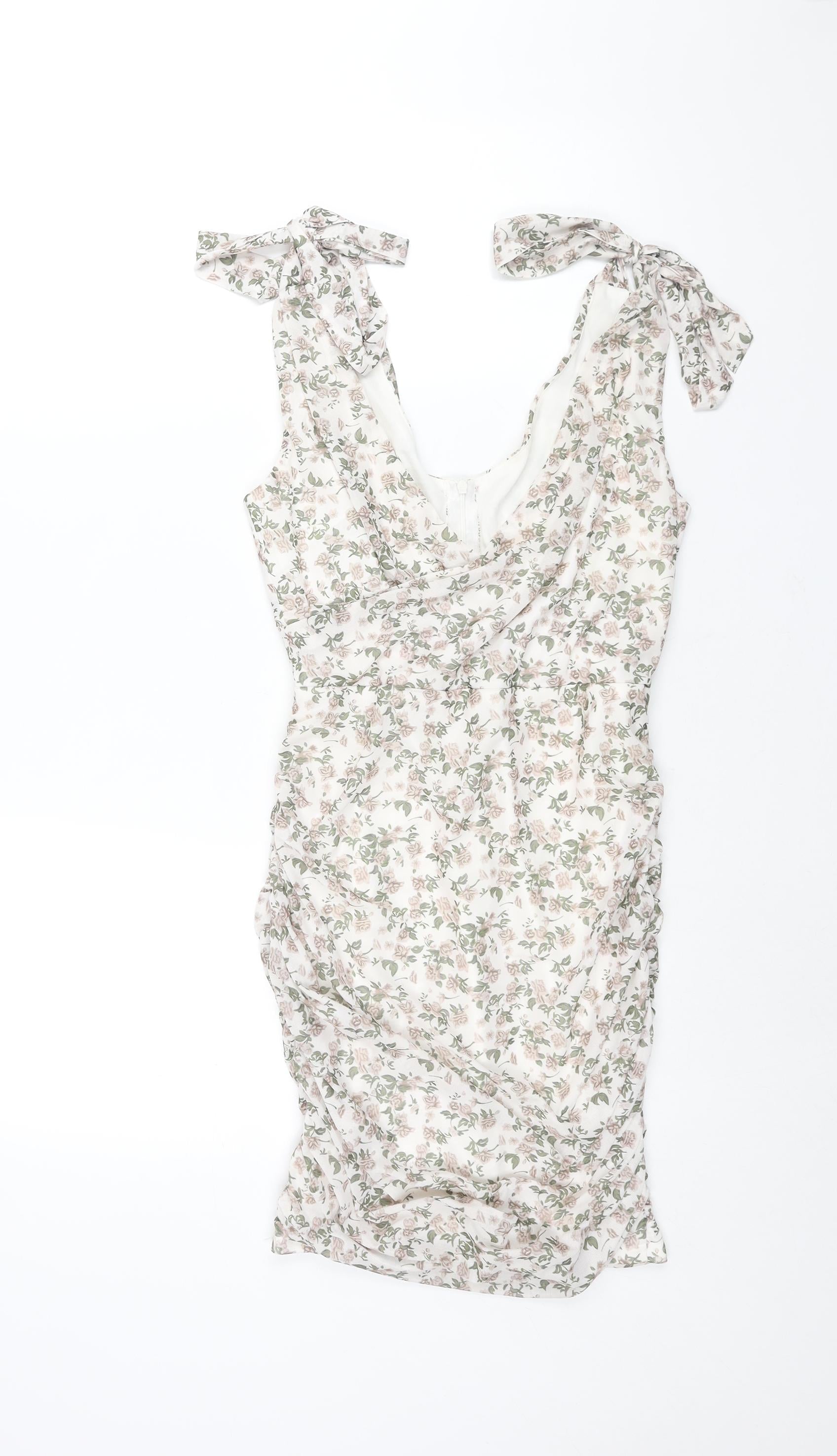 PRETTYLITTLETHING Womens Multicoloured Floral Polyester Mini Size 10 V-Neck Zip - Rouched Bow