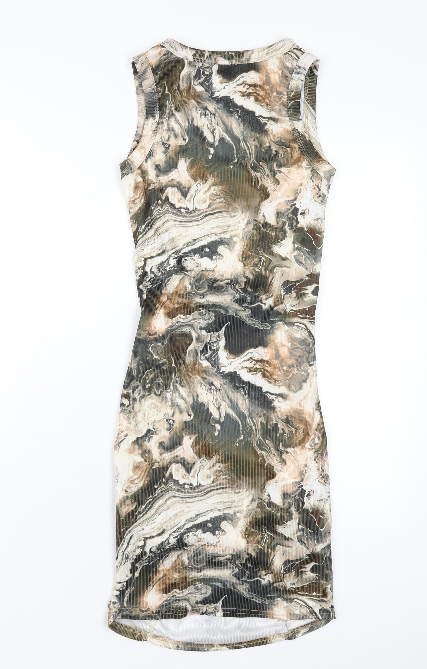 PRETTYLITTLETHING Womens Multicoloured Geometric Polyester Bodycon Size 8 Round Neck Pullover