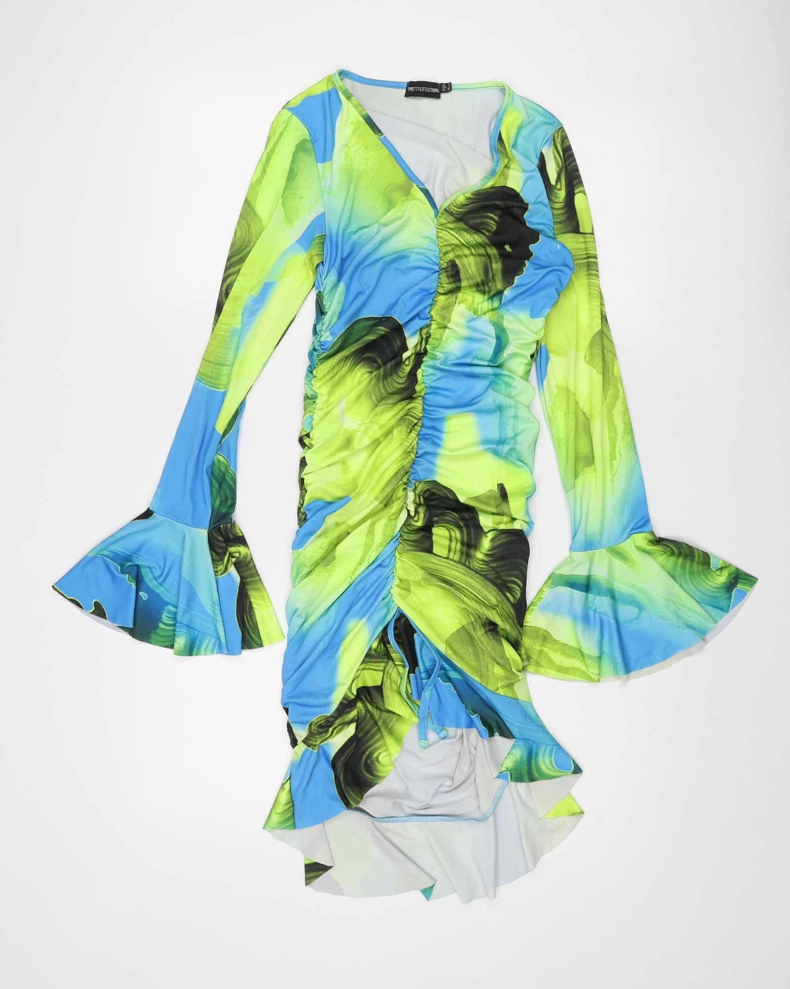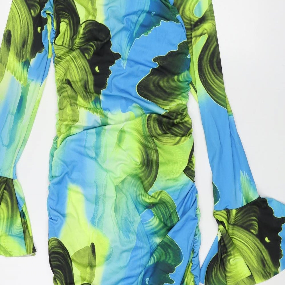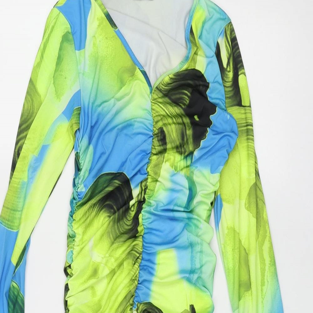 PRETTYLITTLETHING Womens Multicoloured Geometric Polyester Bodycon Size 8 V-Neck Pullover - Rouched Frill