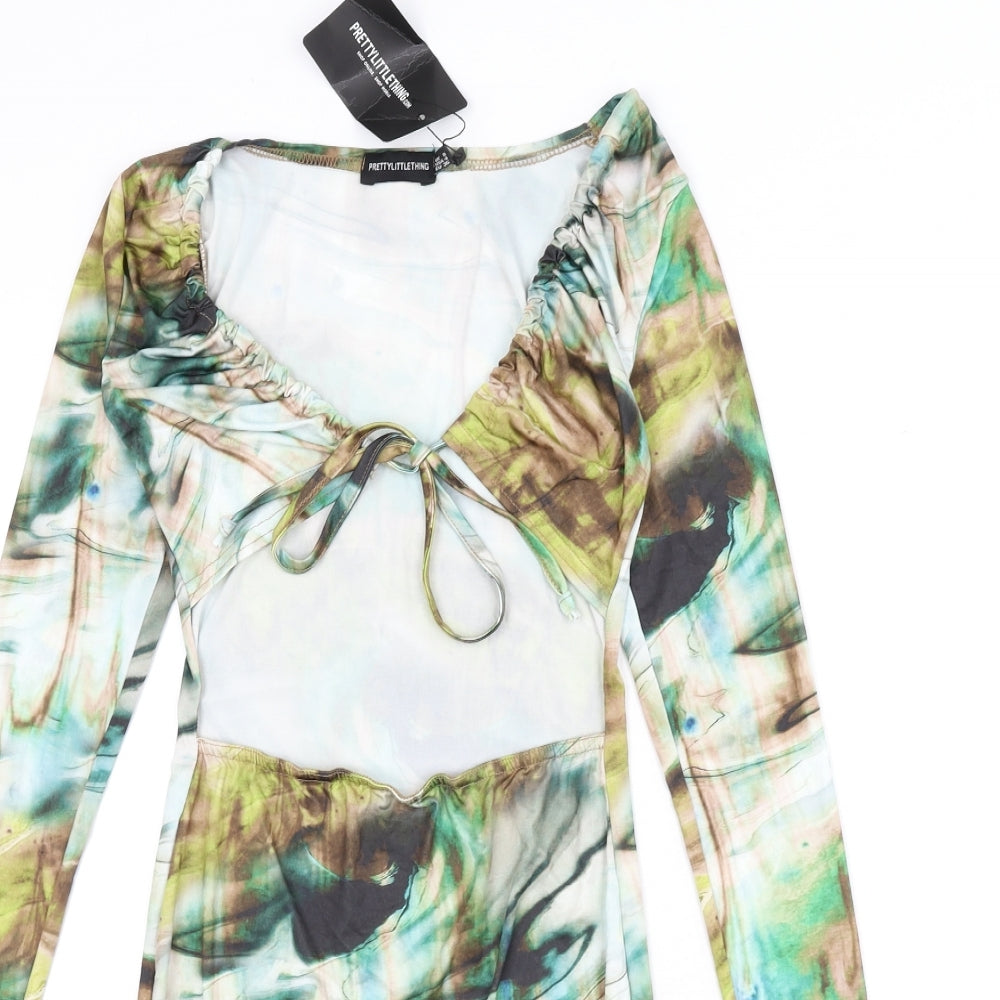 PRETTYLITTLETHING Womens Multicoloured Geometric Polyester Bodycon Size 8 V-Neck Tie - Cut Out Detail