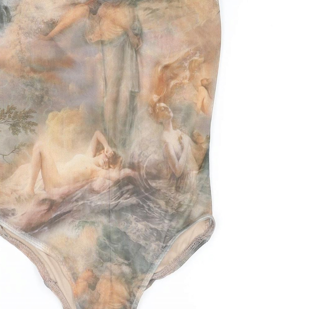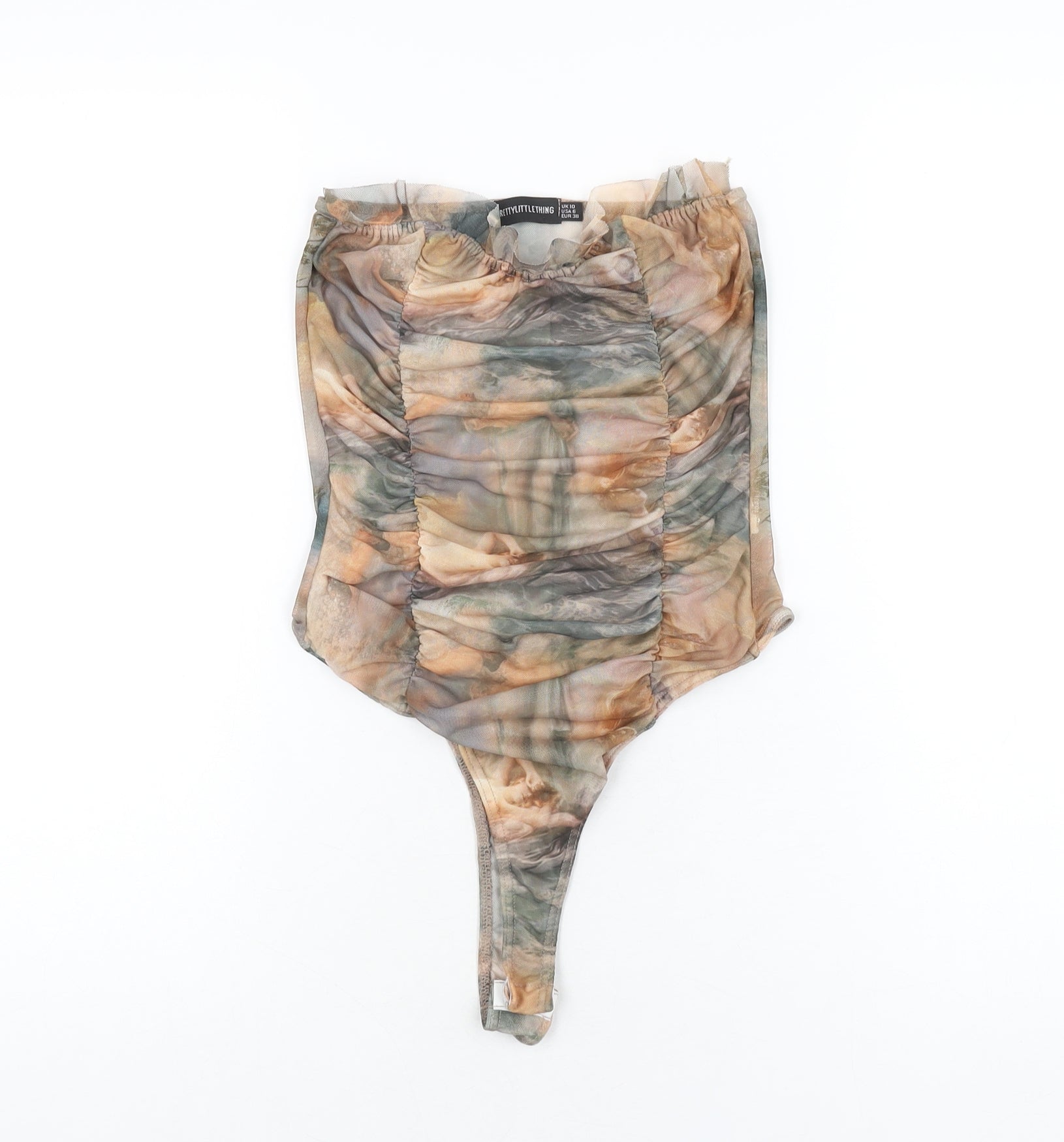 PRETTYLITTLETHING Womens Multicoloured Geometric Polyester Bodysuit One-Piece Size 10 Snap