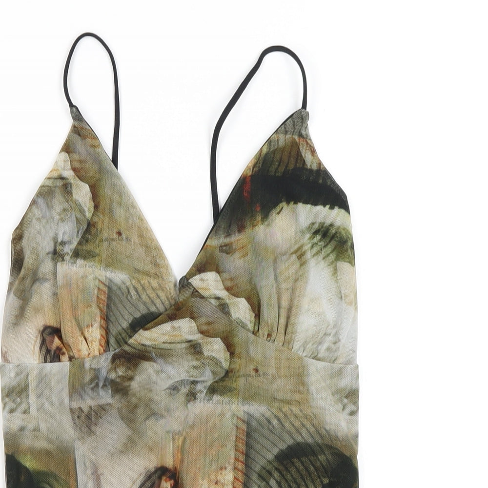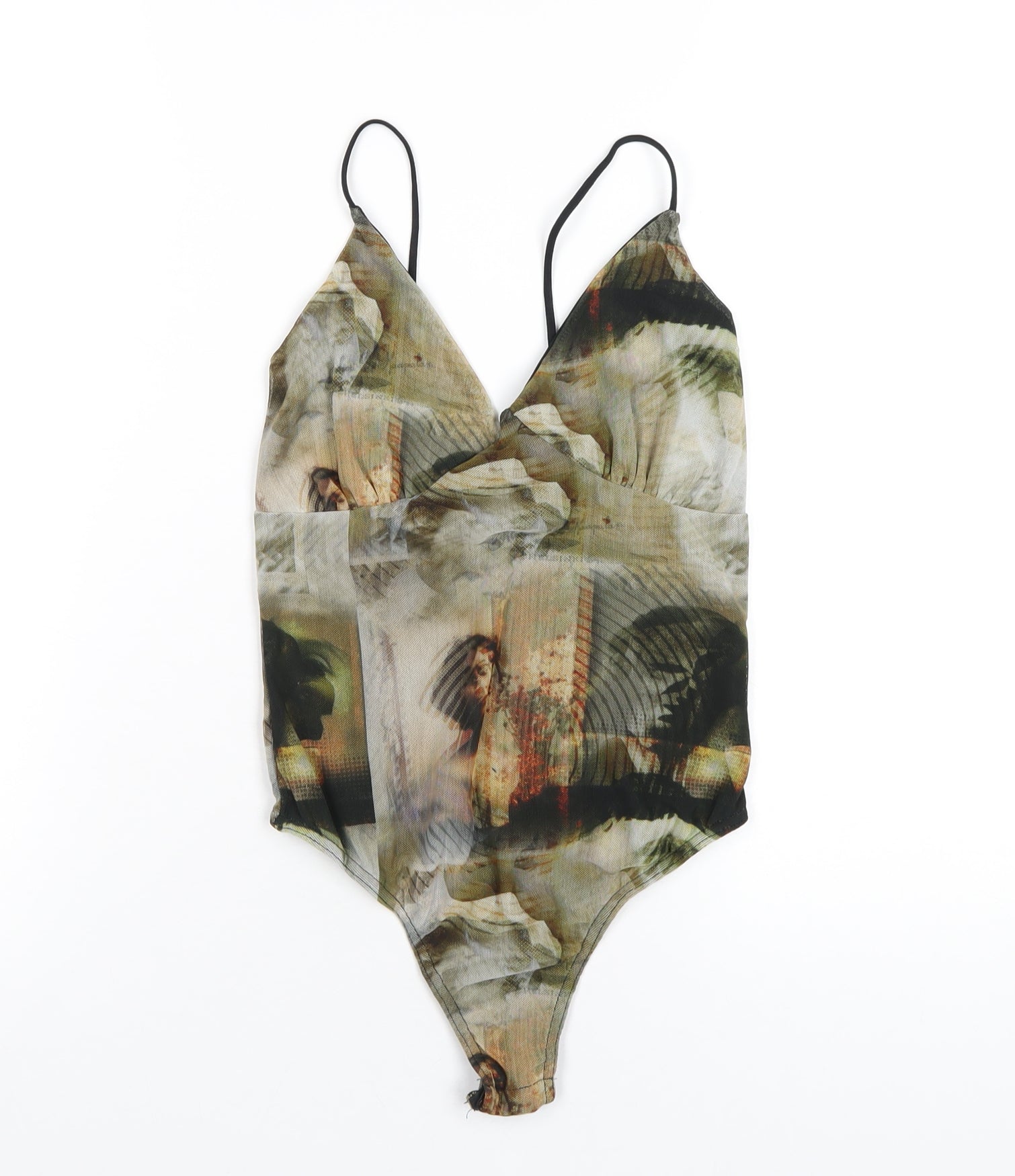 PRETTYLITTLETHING Womens Multicoloured Geometric Polyester Bodysuit One-Piece Size 10 Snap