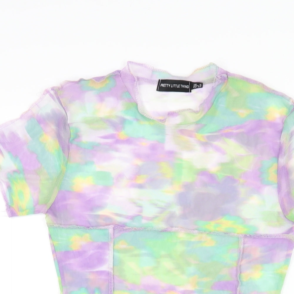 PRETTYLITTLETHING Womens Multicoloured Geometric Polyester Bodysuit One-Piece Size 4 Snap