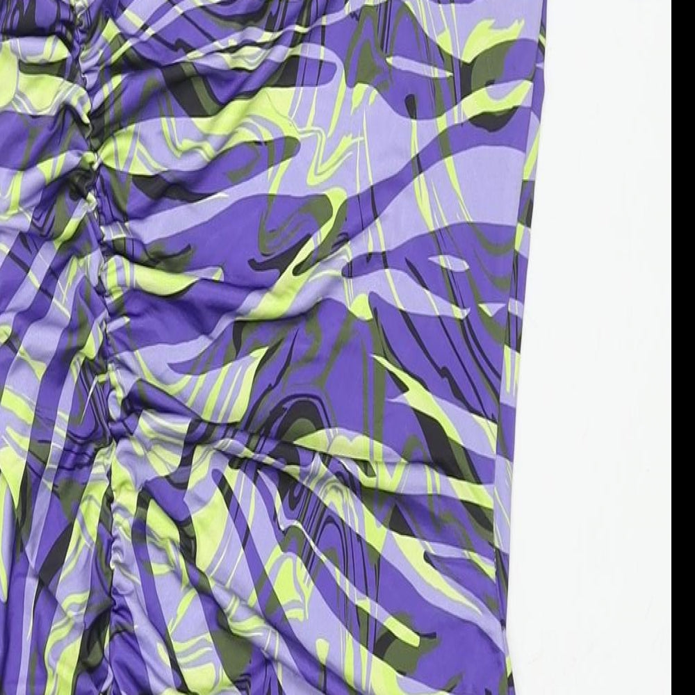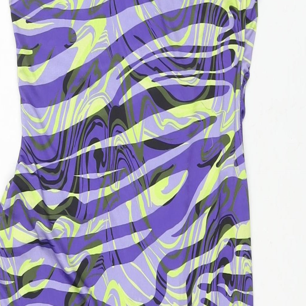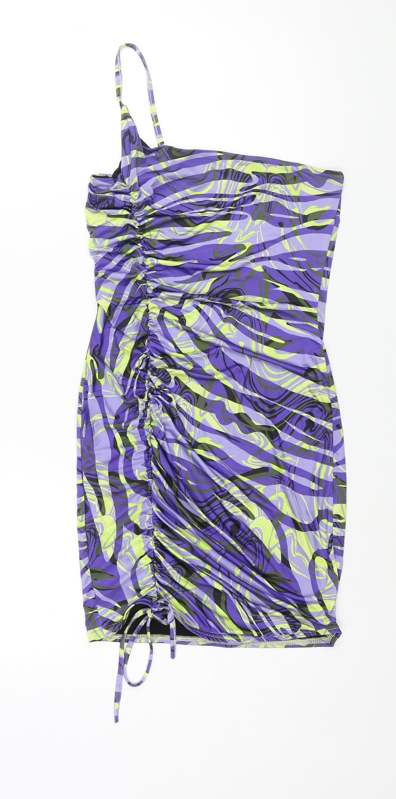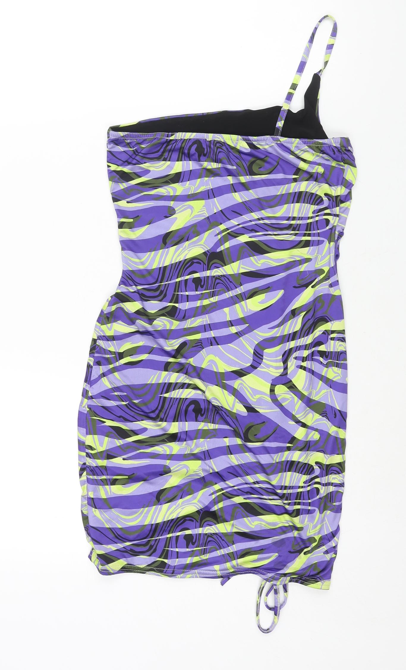 PRETTYLITTLETHING Womens Multicoloured Geometric Polyester Mini Size 8 One Shoulder Pullover - Rouched