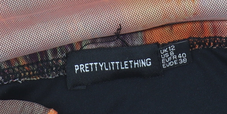 PrettyLittleThing Women's Orange Bodycon Strapless Dress, Size 12