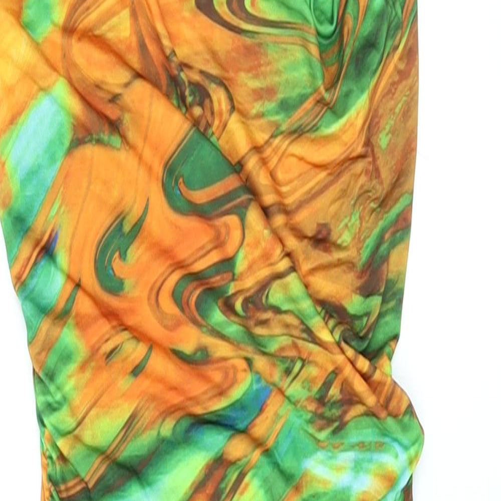 PRETTYLITTLETHING Womens Orange Geometric Polyester Bodycon Size 8 Cowl Neck Pullover - Marble Effect Ruched