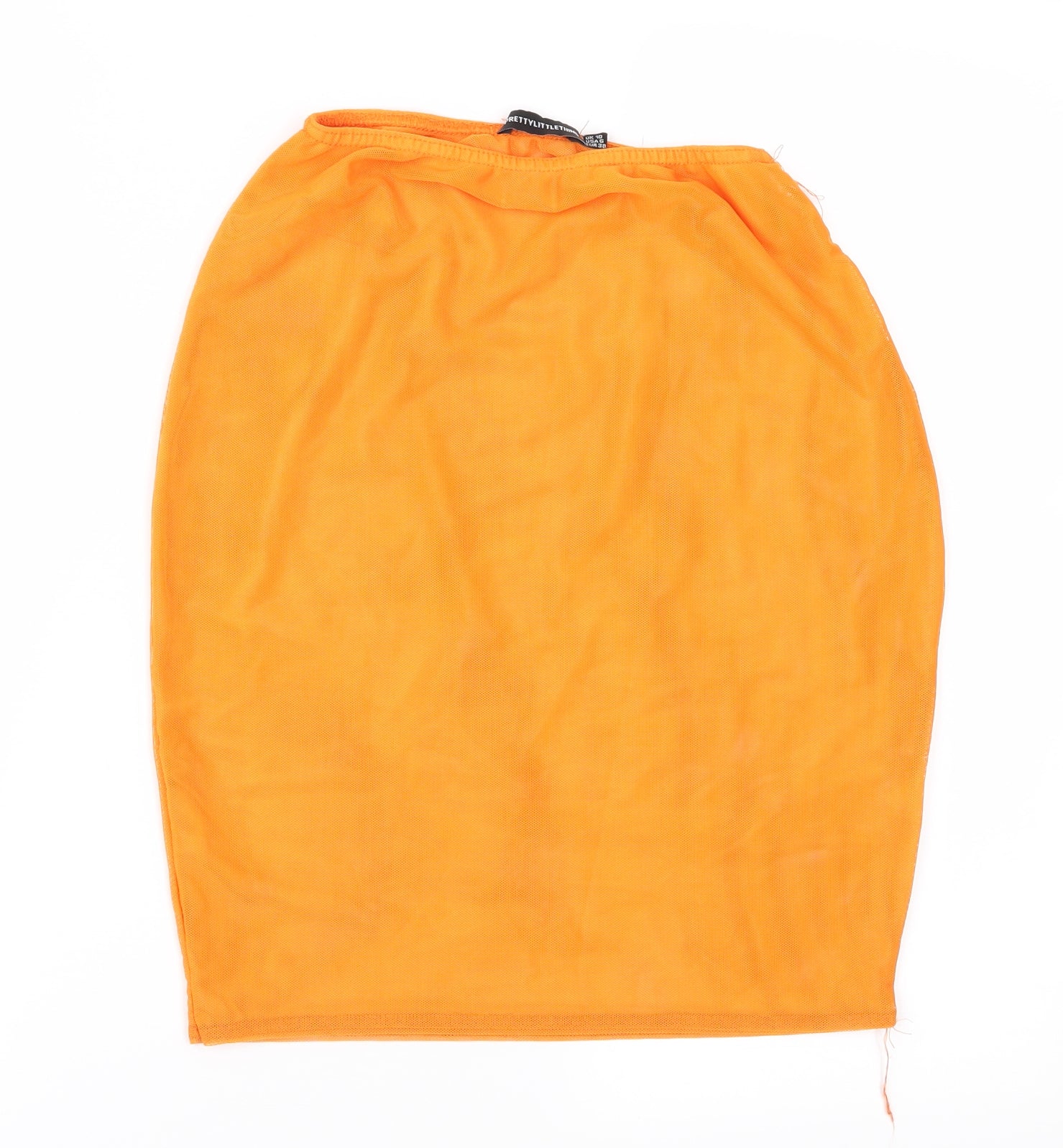 PRETTYLITTLETHING Womens Orange Mesh Straight & Pencil Skirt Size 10