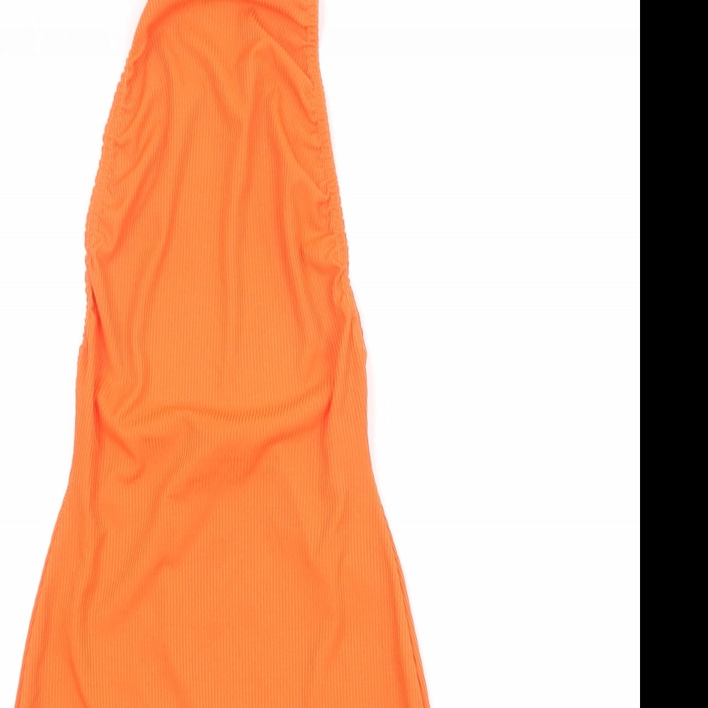 PRETTYLITTLETHING Womens Orange Polyester Bodycon Size 6 Halter Button
