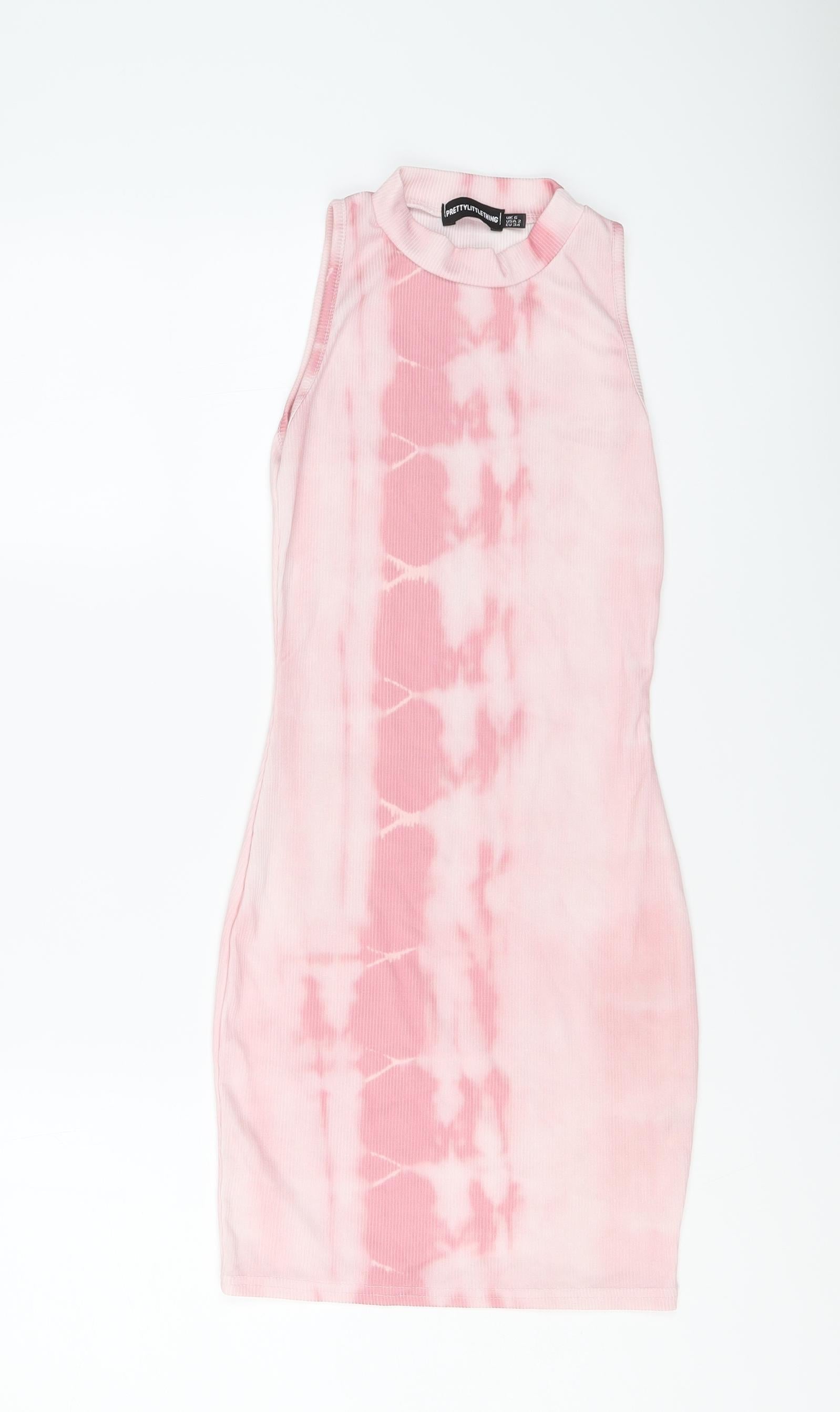 PRETTYLITTLETHING Womens Pink Geometric Polyester Bodycon Size 6 Mock Neck Pullover
