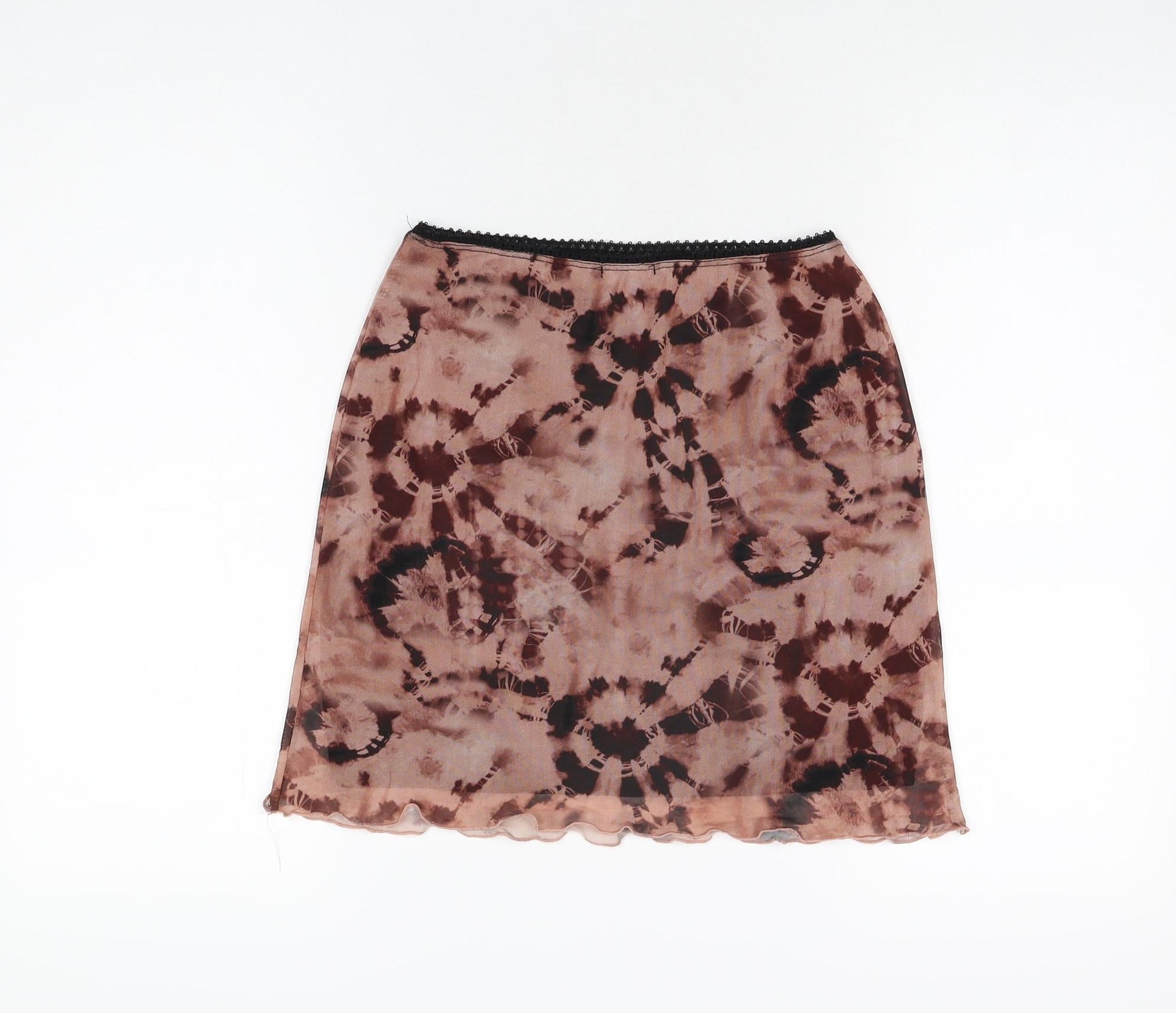 PRETTYLITTLETHING Womens Pink Geometric Polyester Mini Skirt Size 10 - Tie Dye