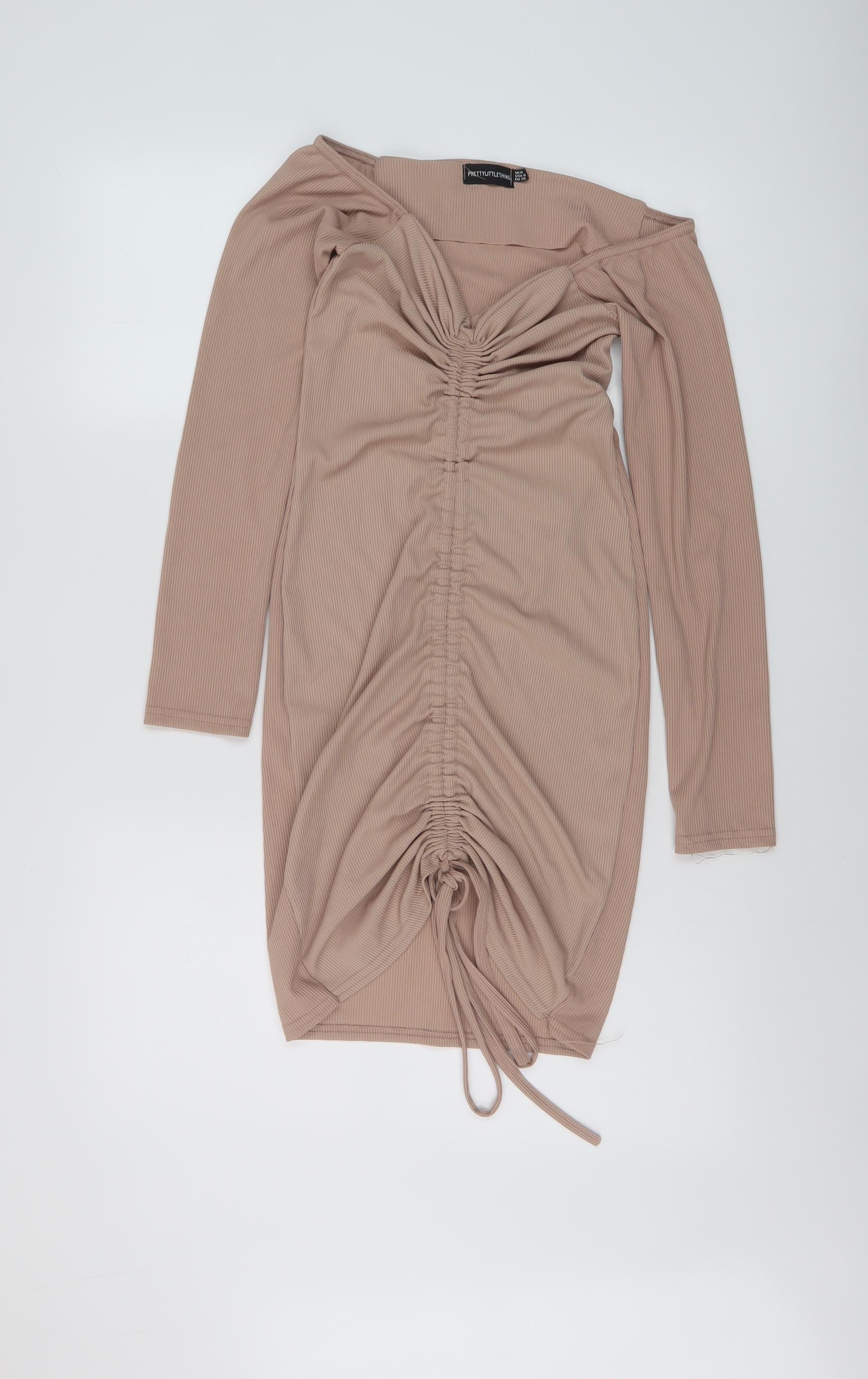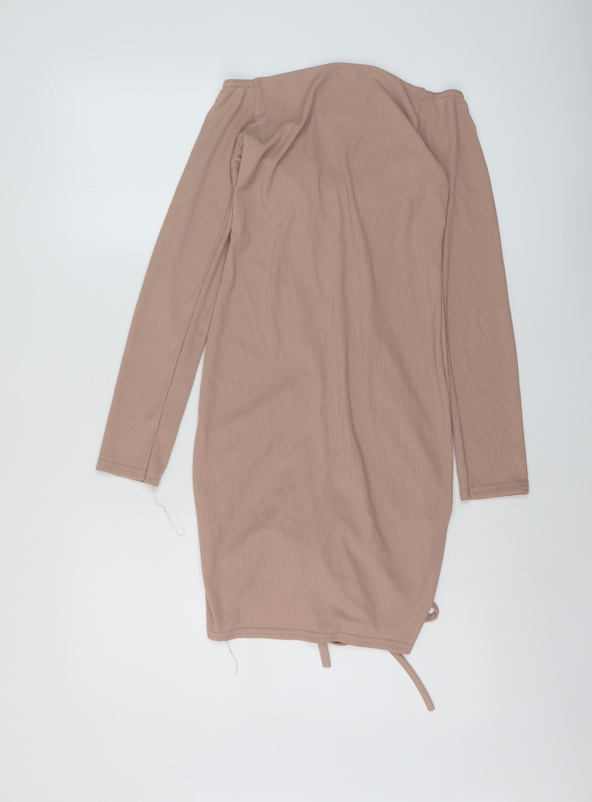 PRETTYLITTLETHING Womens Pink Polyester Bodycon Size 10 V-Neck Pullover