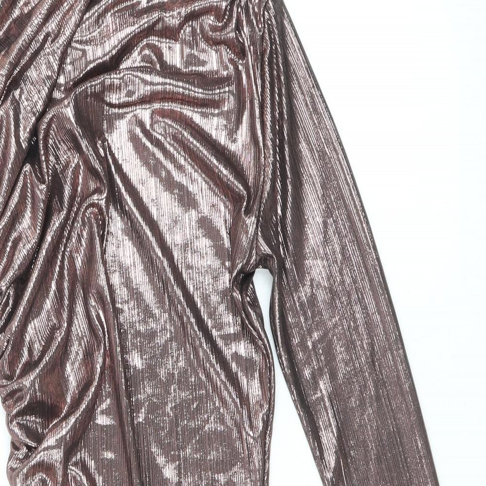PRETTYLITTLETHING Womens Pink Polyester Bodycon Size 6 One Shoulder Pullover - Metallic
