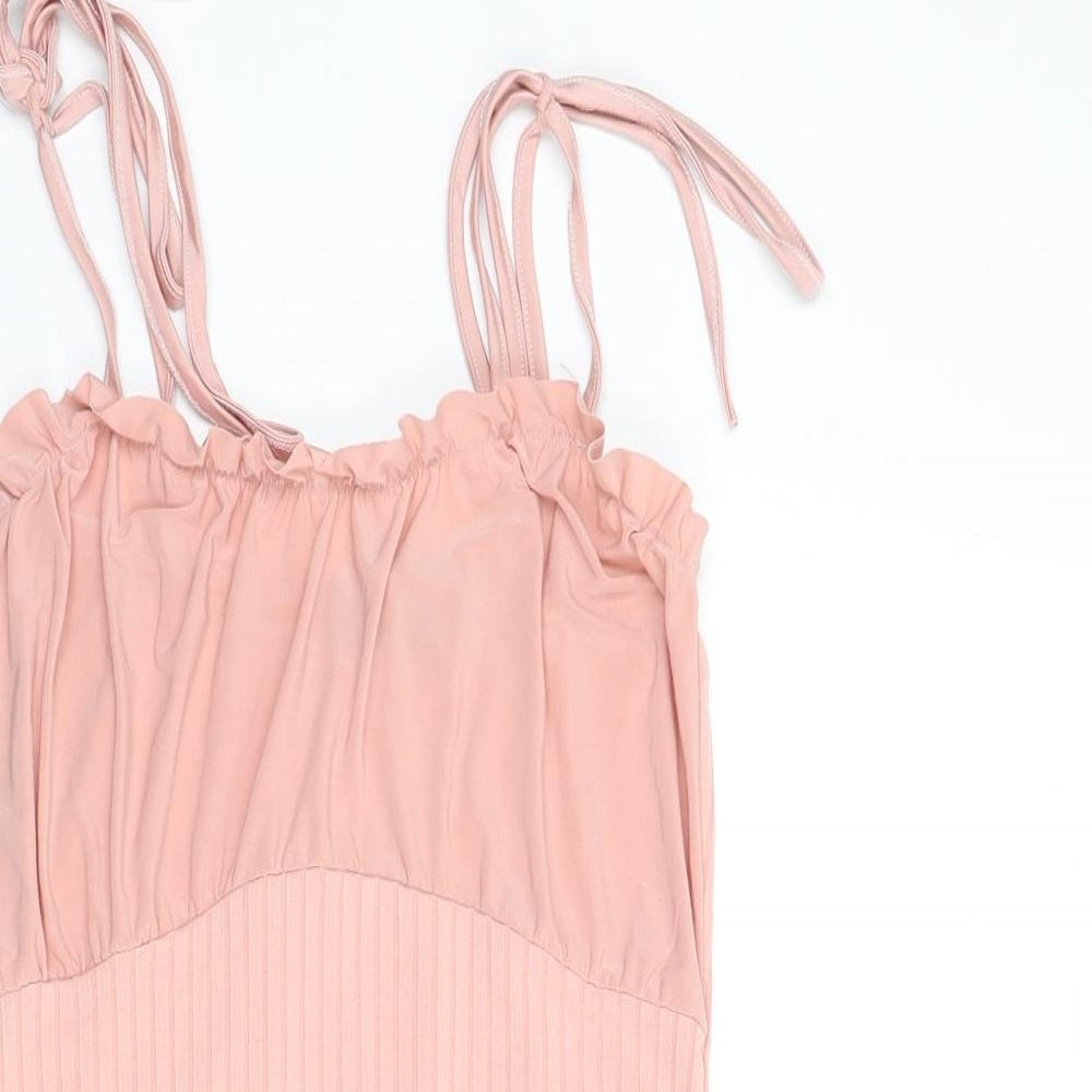 PRETTYLITTLETHING Womens Pink Polyester Bodycon Size 8 Square Neck Tie - Ribbed