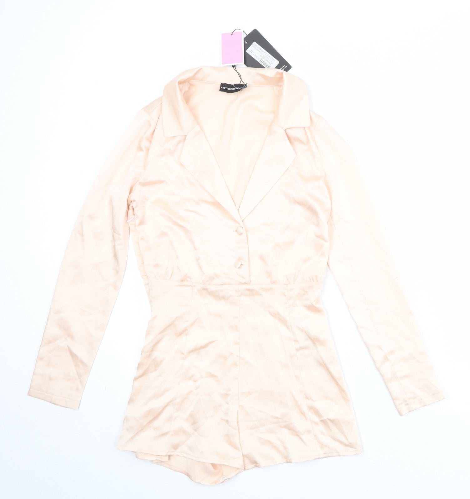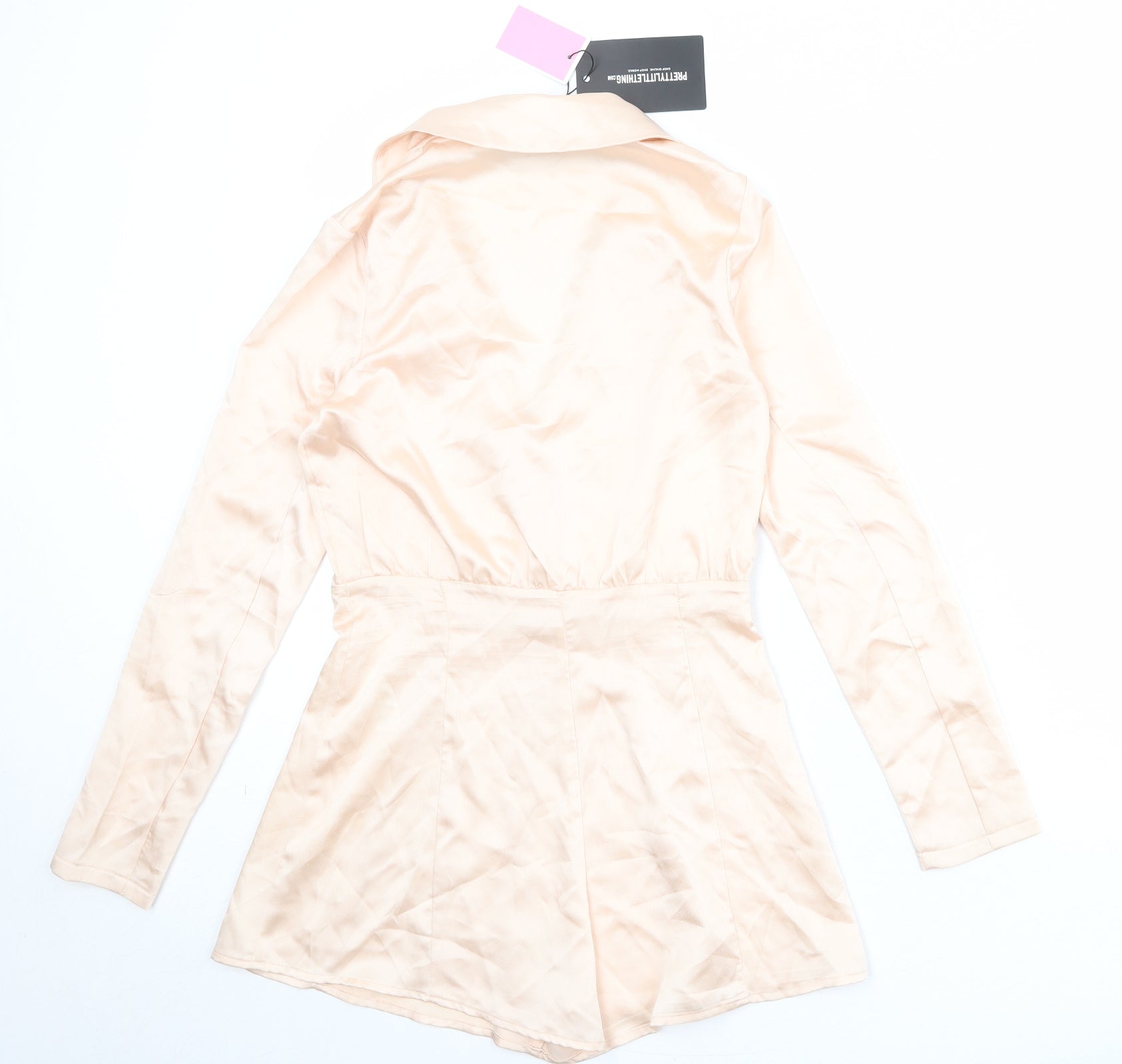 PRETTYLITTLETHING Womens Pink Polyester Playsuit One-Piece Size 6 Zip