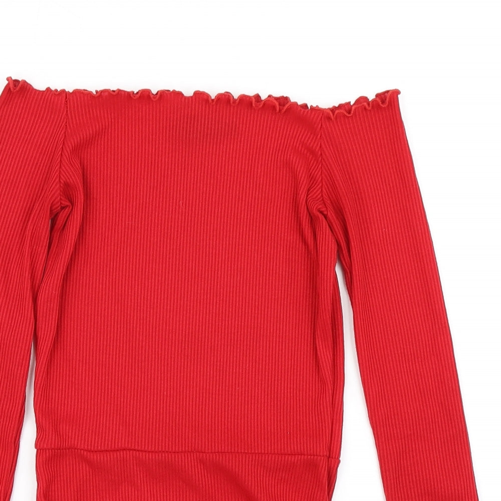 PRETTYLITTLETHING Womens Red Bodysuit One-Piece Size 4 - Lettuce Edging