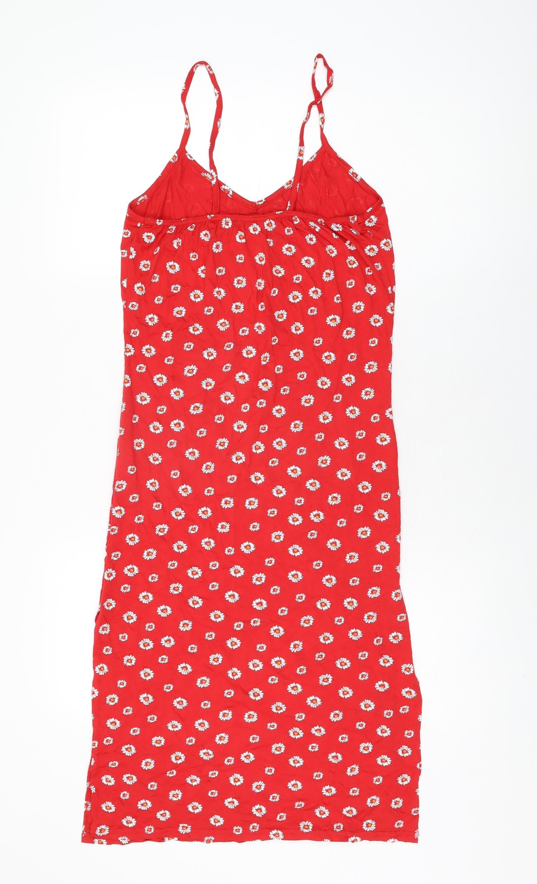 PRETTYLITTLETHING Womens Red Floral Viscose Bodycon Size 6 V-Neck Pullover