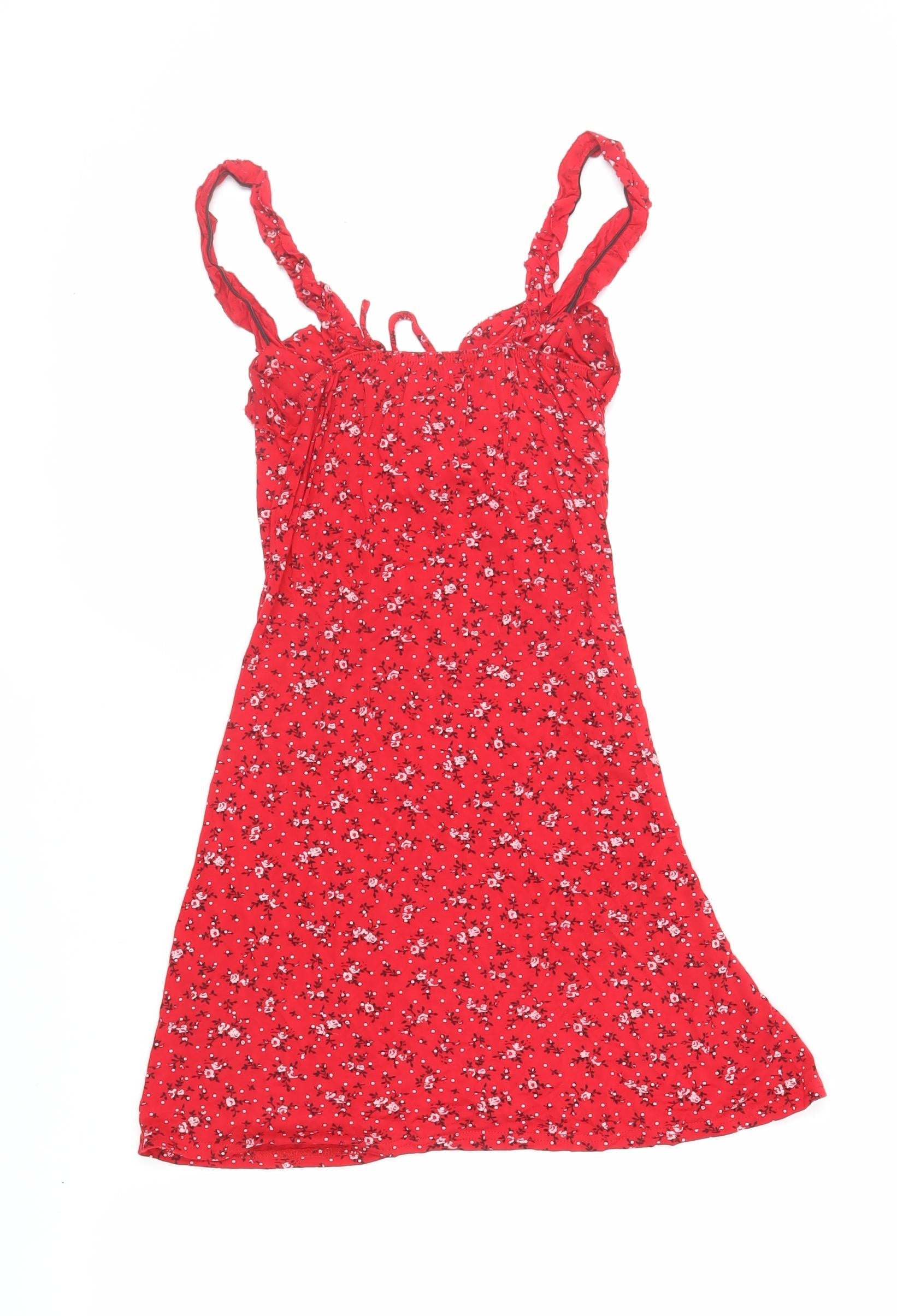 PRETTYLITTLETHING Womens Red Floral Viscose Mini Size 6 Sweetheart Pullover